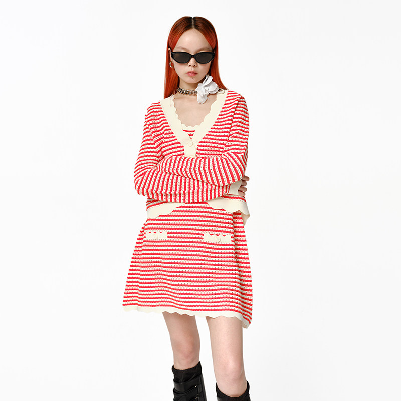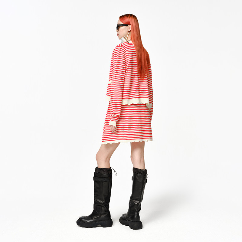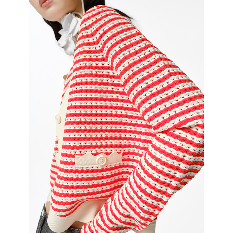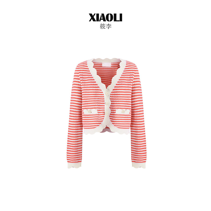 【限定款】XIAOLI筱李设计师款红白撞色波浪条纹针织开衫短外套