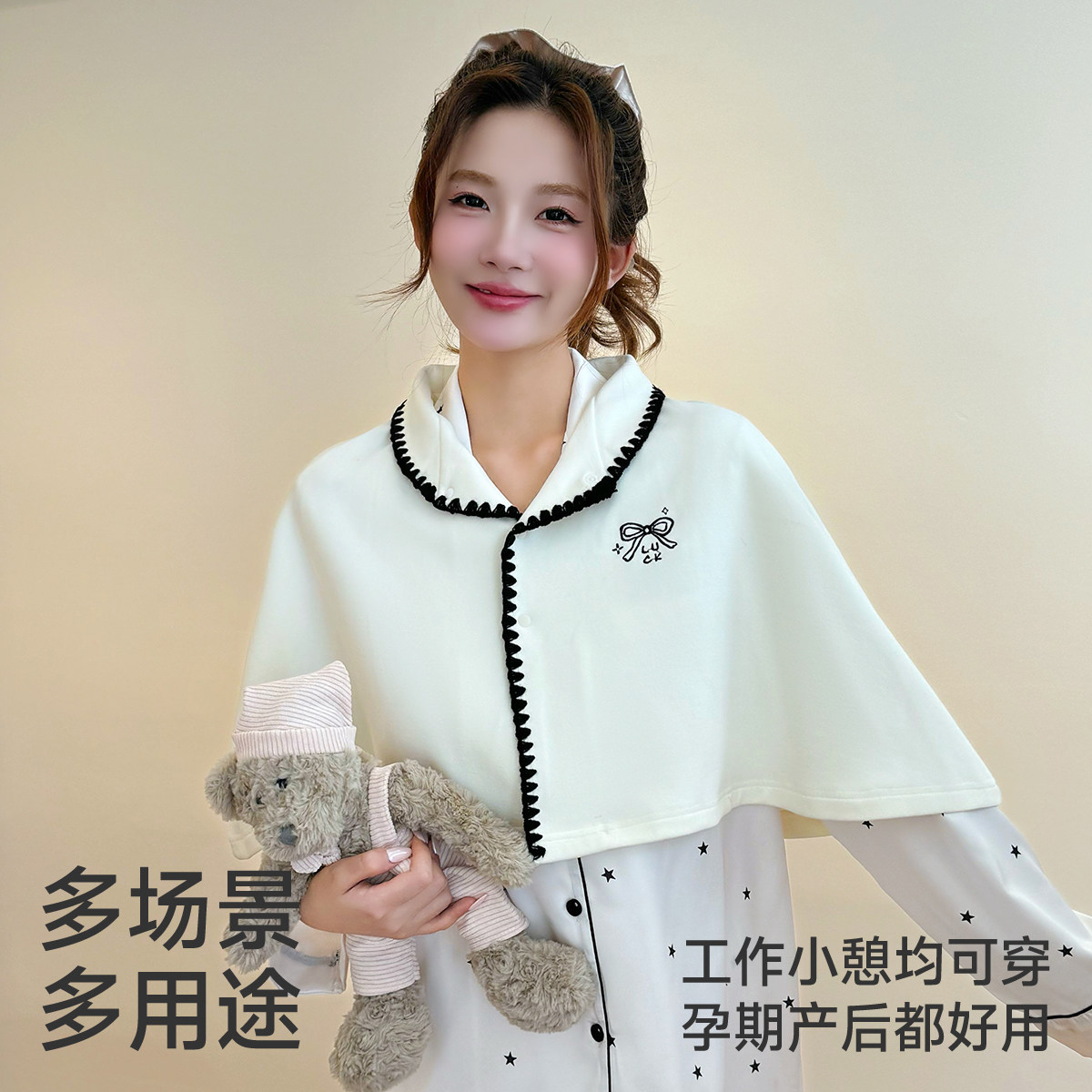 婧麒月子披肩四季保暖加长多功能护肩斗篷产后喂奶肩周防寒哺乳垫