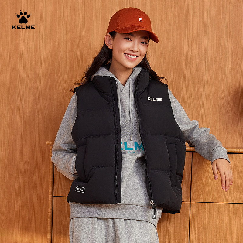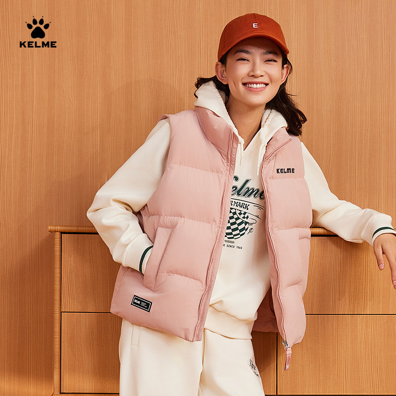 KELME卡尔美运动棉马甲女冬季新款休闲复古马夹外套坎肩背心棉服