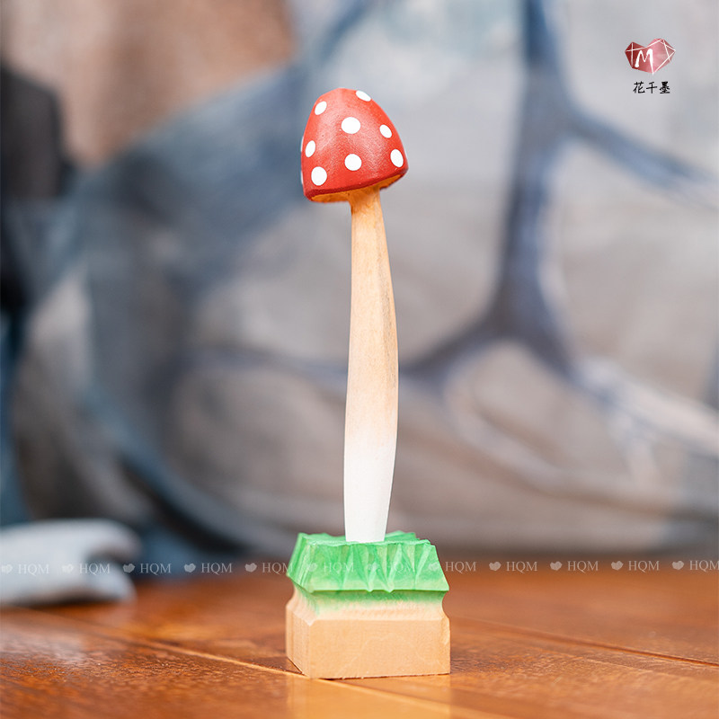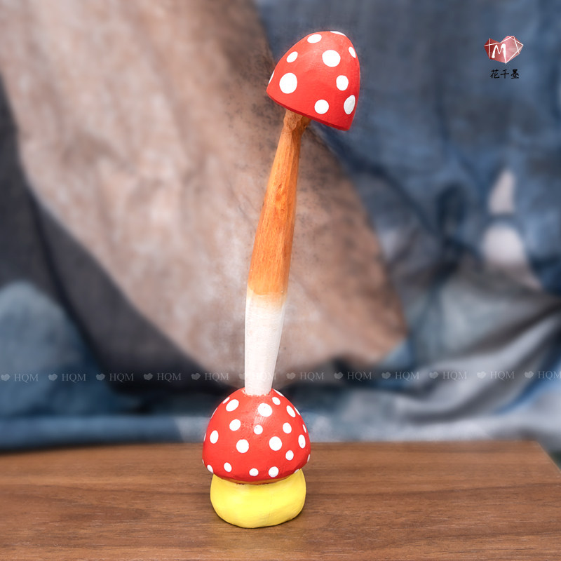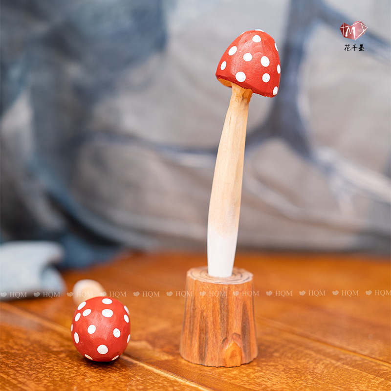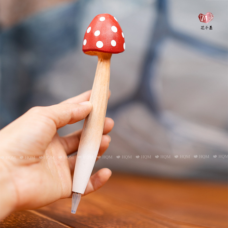 纯手工可爱蘑菇实木雕刻中性笔森系文艺摆件碳素签字笔学生礼物女