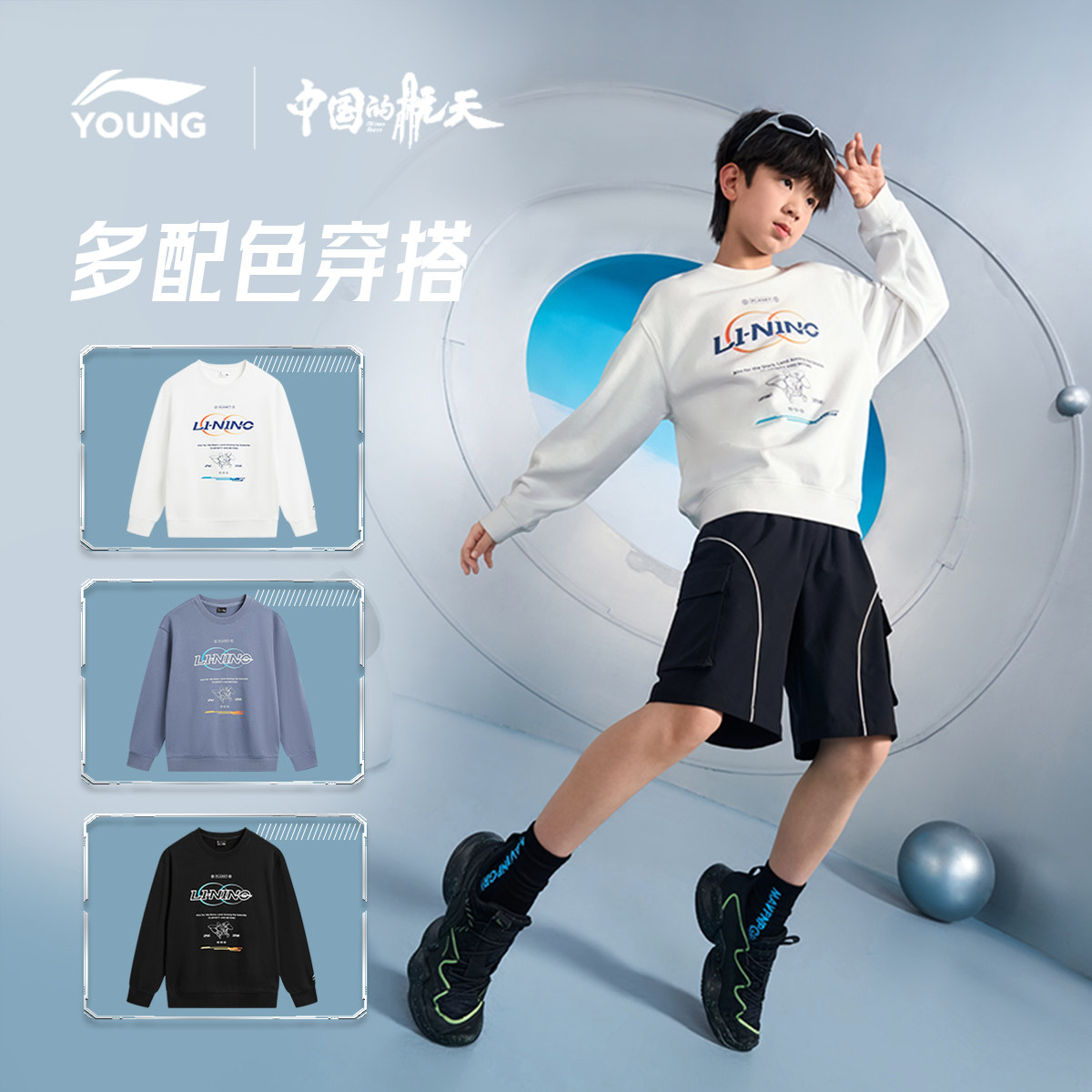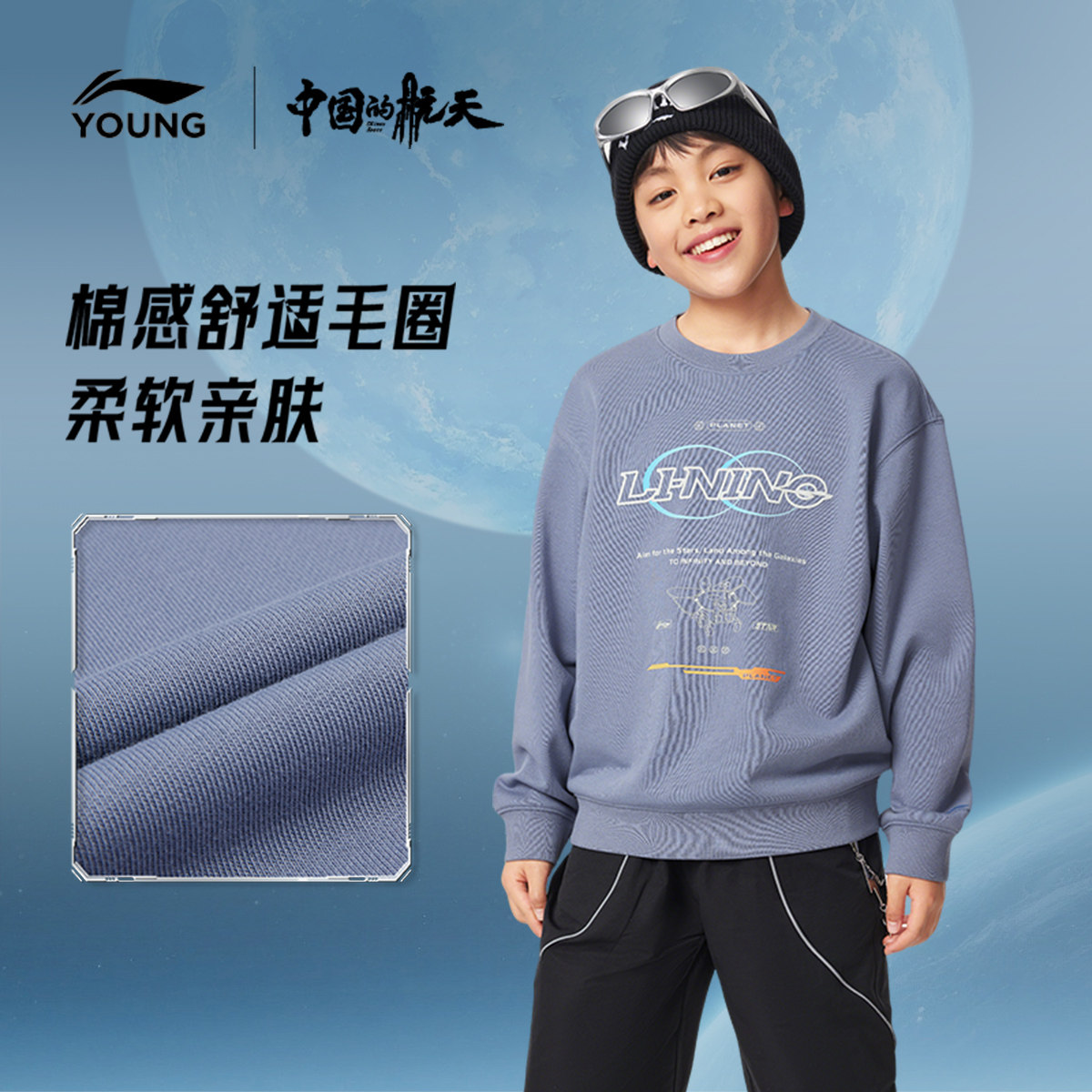李宁童装卫衣男女小大童运动生活系列宽松春季休闲毛圈针织童装