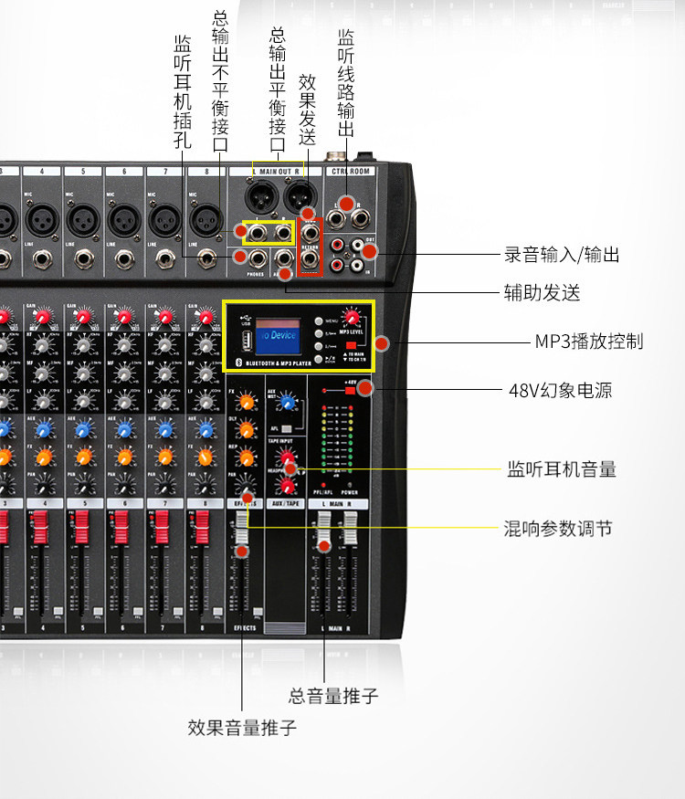 专业8路调音台舞台演出会议婚庆dj调音台户外ktv酒吧