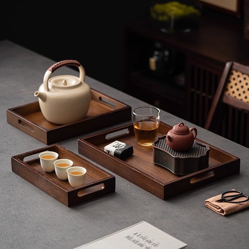 中式胡桃木托 托盘木质茶杯小盘子家用水果甜点功夫木盘咖啡器具