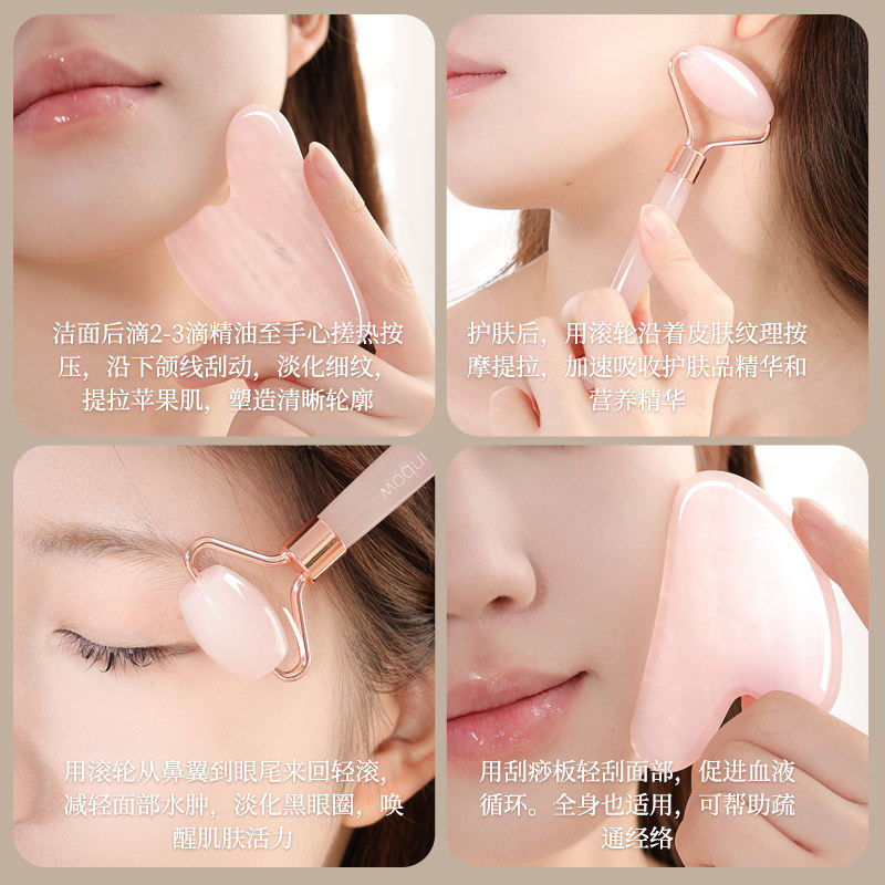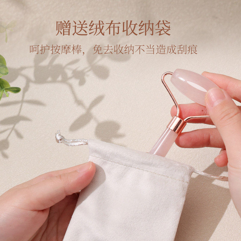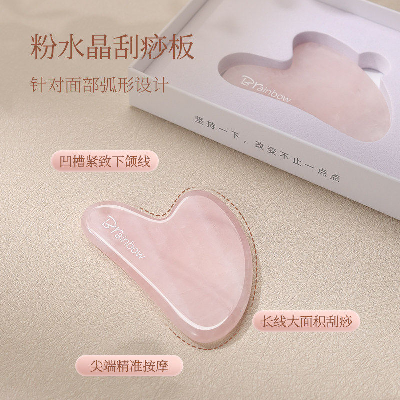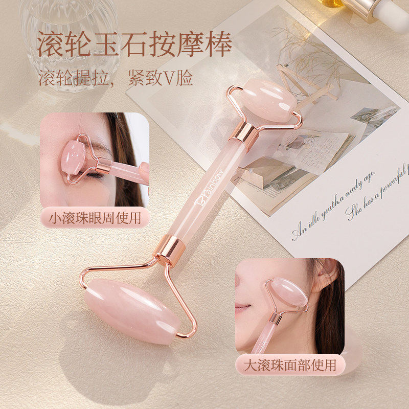 Brainbow粉晶玉石滚轮按摩棒美容刮痧板脸部按摩眼部穴位拨筋推脸