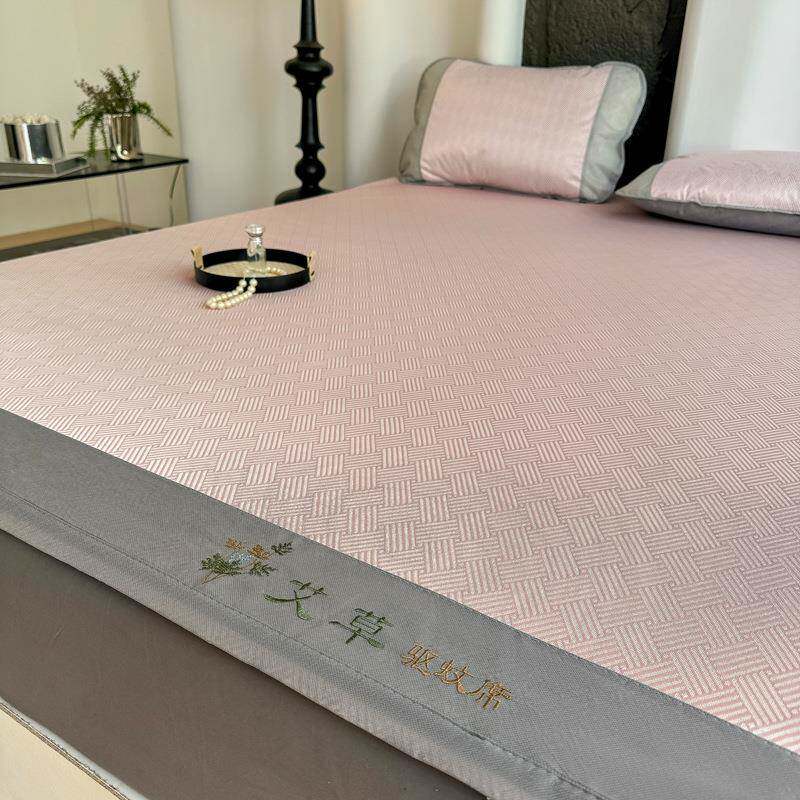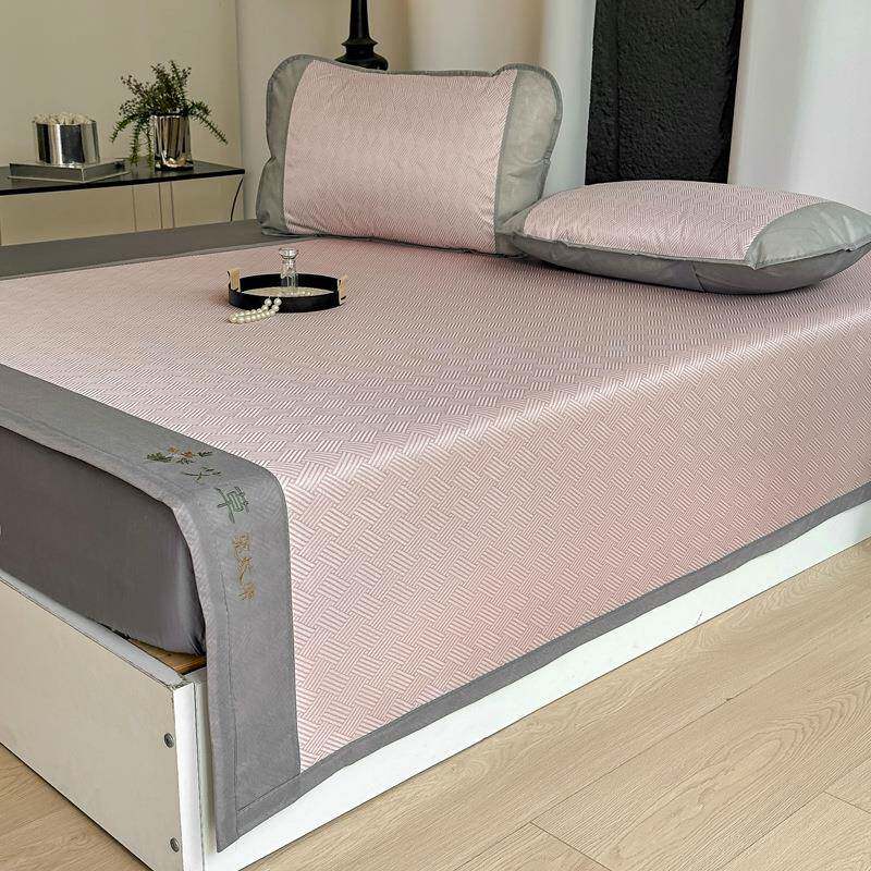 夏季新款凉感水洗冰晶冰丝席刺绣无纺布床席款床笠款可水洗三件套
