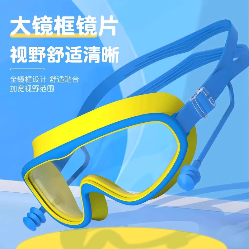 2025男童儿童款大框高清泳防水防雾游泳镜连体耳塞新款护目镜