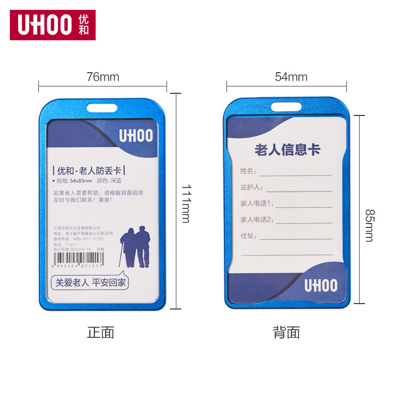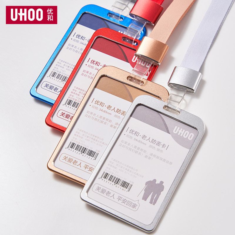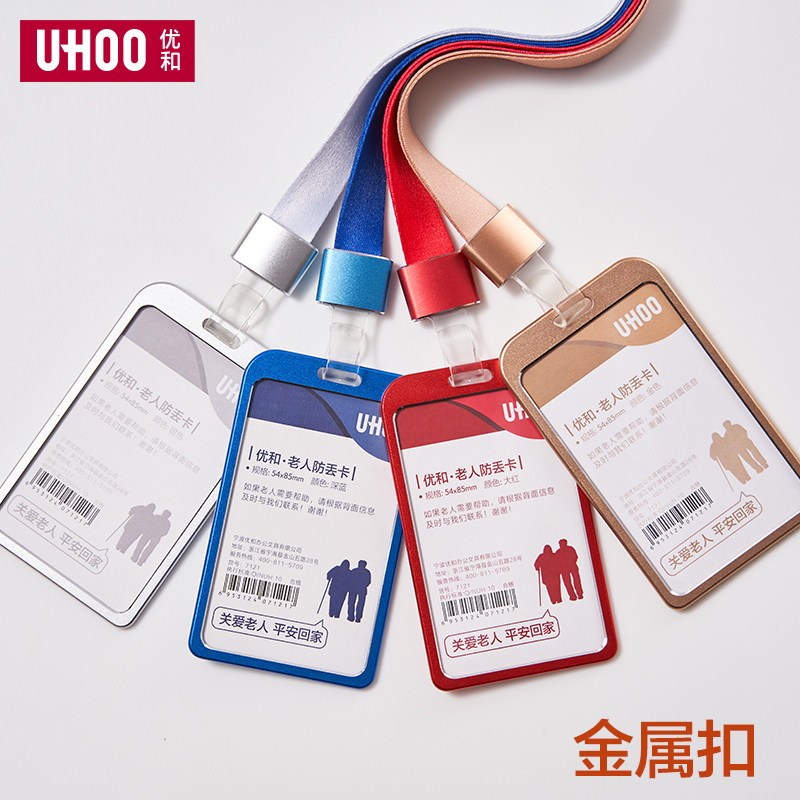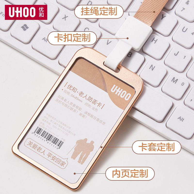 UHOO优和老人防走丢透明金属卡套身份信息胸牌卡套公交卡饭卡套证件保护套工作牌卡套胸牌挂绳定制高级塑料