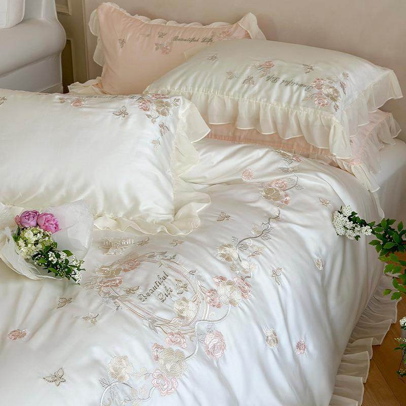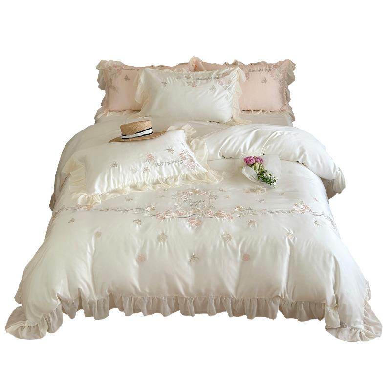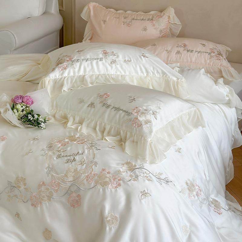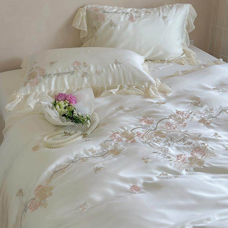 法式公主风夏季天丝床上四件套凉感刺绣被套床单轻奢高端少女床品