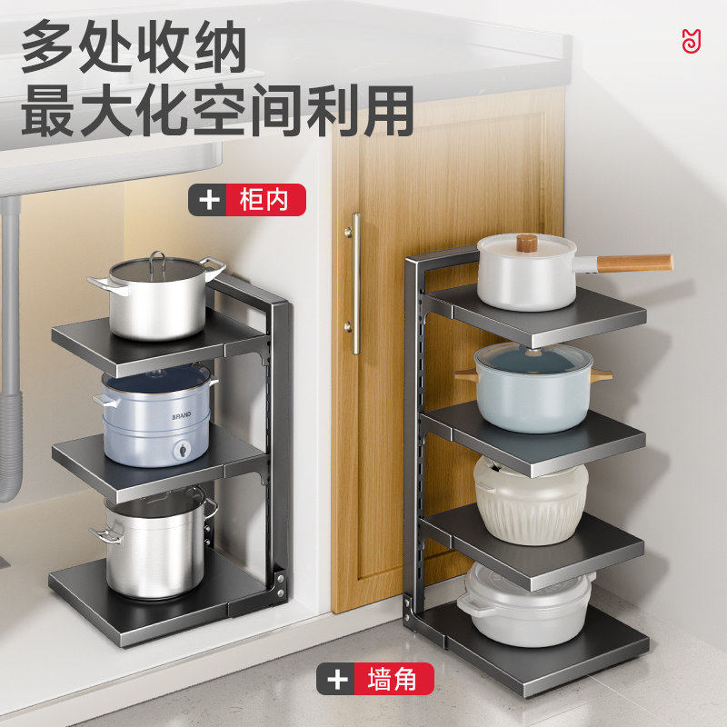 厨房置物架家用多功能锅具收纳架多层橱柜下水槽灶台分层放锅架子