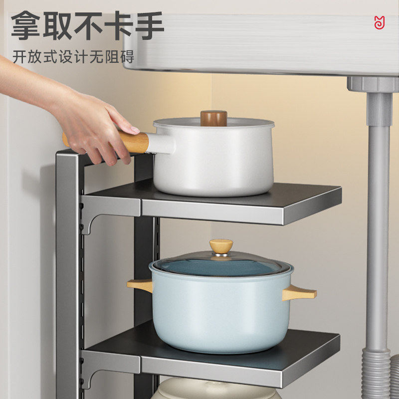 物鸣新款橱柜锅具收纳架锅架厨房置物架家用多功能下水槽下收纳架