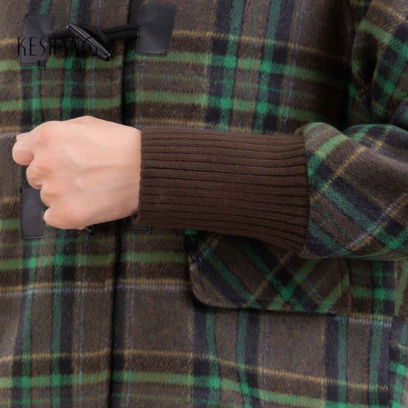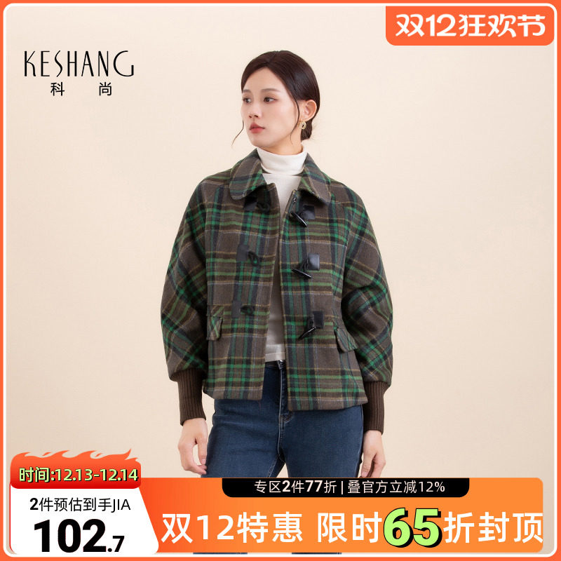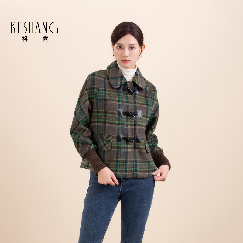科尚牛角扣格子外套女2025冬季新款小个子显高翻领短款毛呢大衣