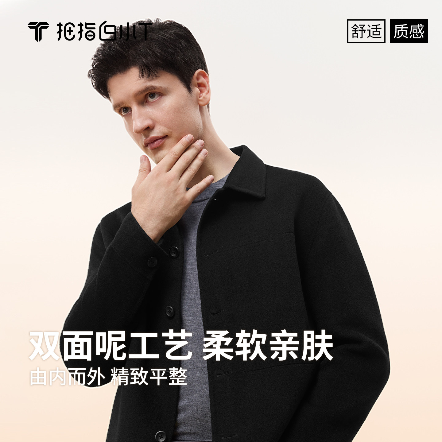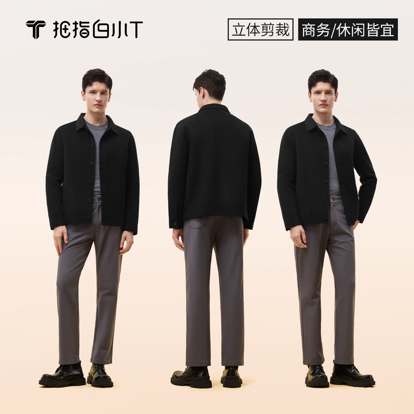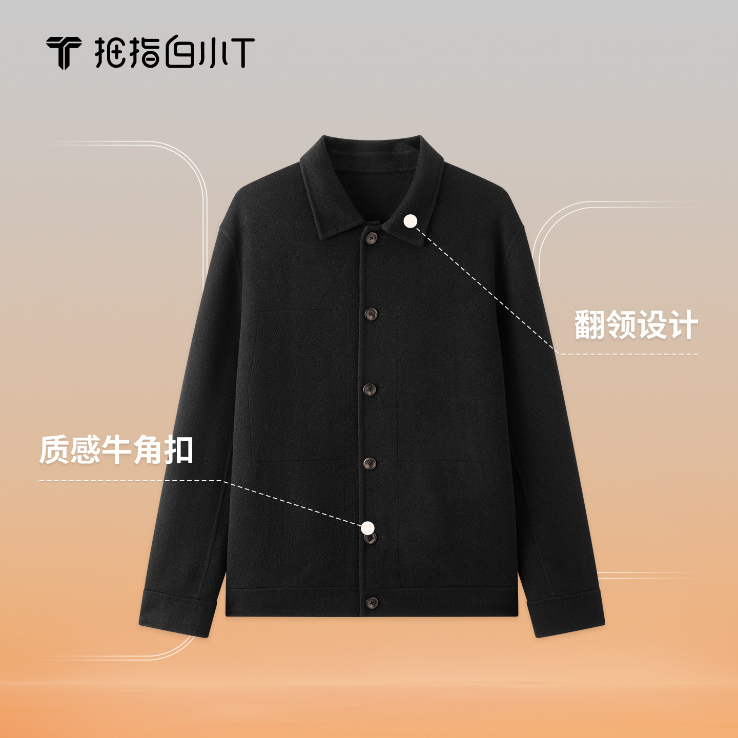 拇指白小T双面呢羊毛短款大衣男装冬季新款商务休闲轻奢加热外套