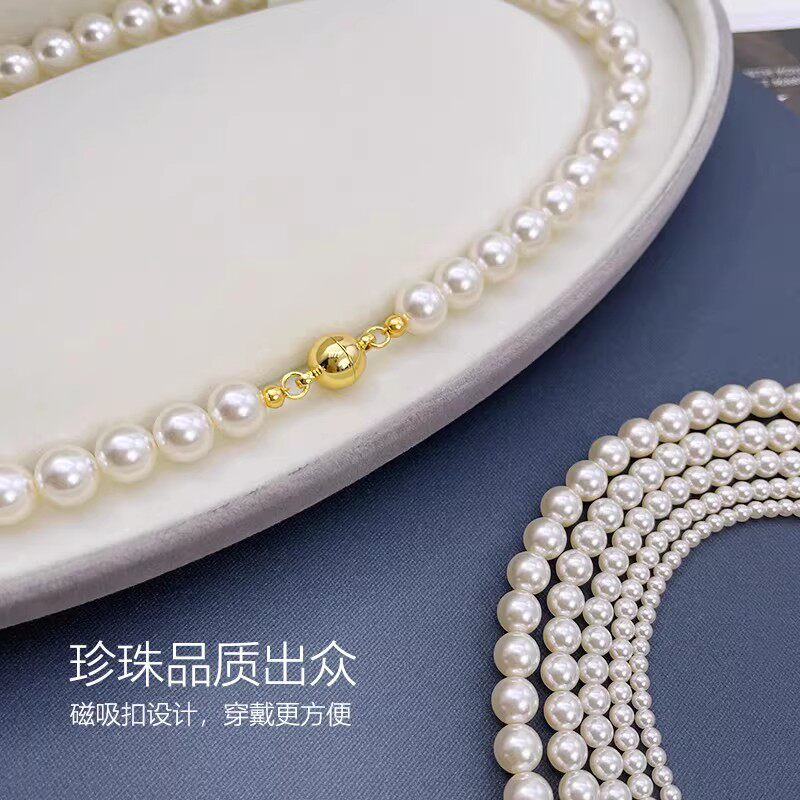 施家仿珍珠项链女2026新款爆款小众正圆小米珠宝轻奢锁骨颈链首饰
