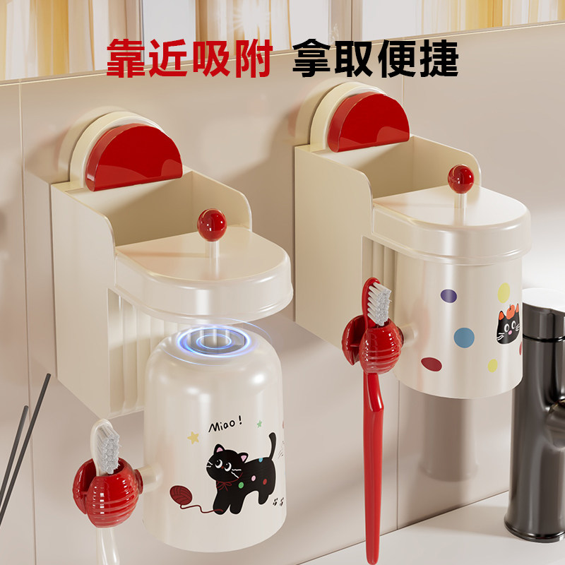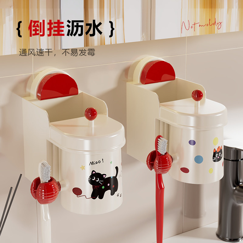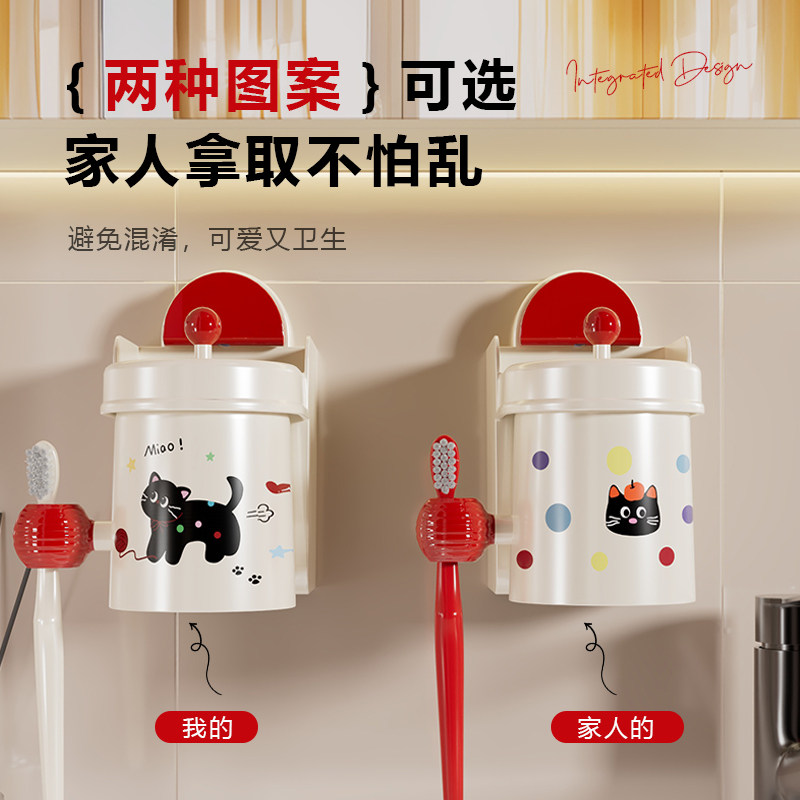 免打孔牙刷置物架情侣电动牙刷壁挂式漱口杯牙膏架卫生间收纳神器