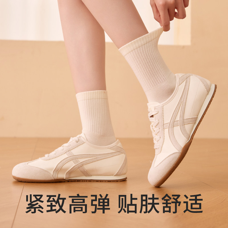 猫人女士中筒袜100%纯棉精油香氛防臭2026秋冬季新款全棉白色袜子