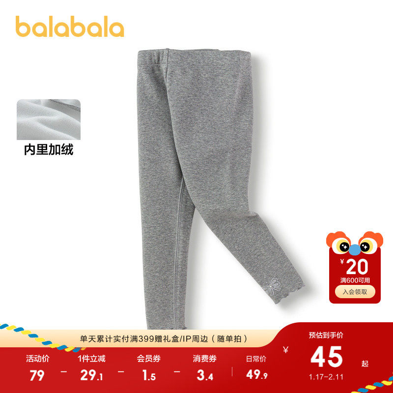 巴拉巴拉童装儿童裤子女童冬长裤加绒打底裤洋气保暖加厚百搭休闲