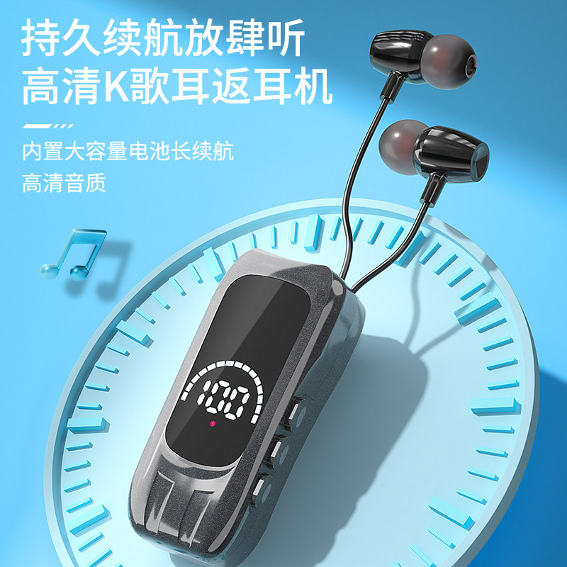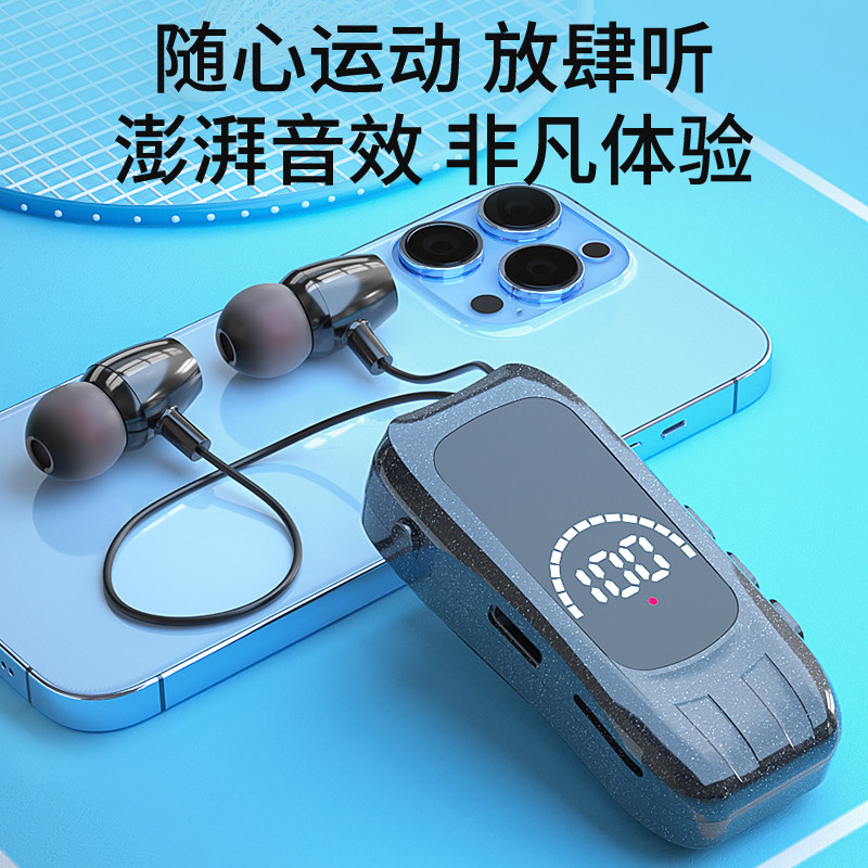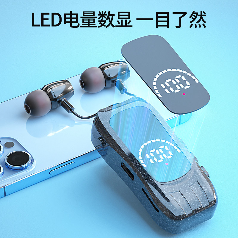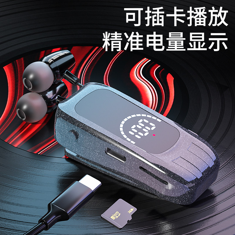蓝牙耳机外卖自动伸缩续航降噪领夹式听歌通话开车骑行通用可插卡