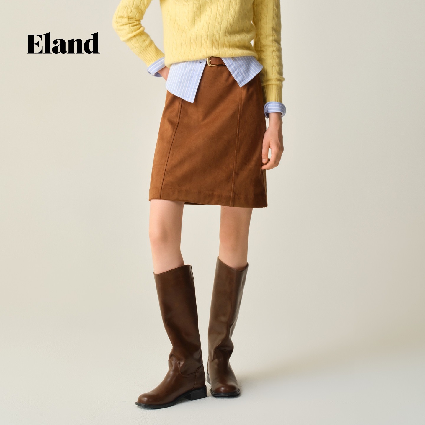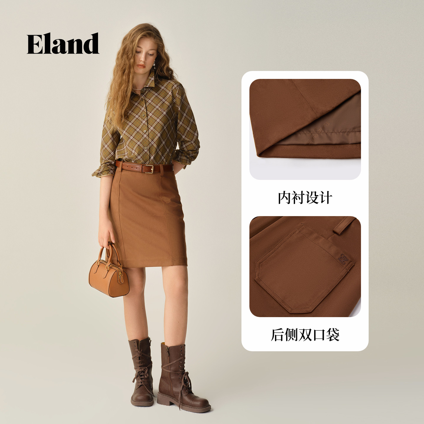 Eland衣恋半身裙女时尚休闲显瘦纯色H型包臀裙025冬季新款