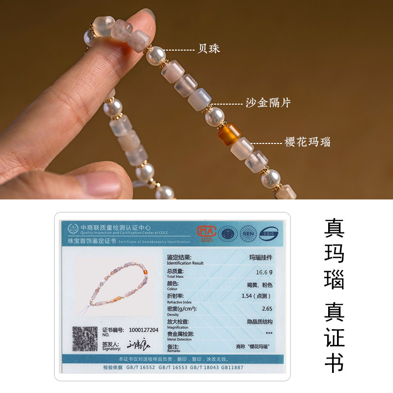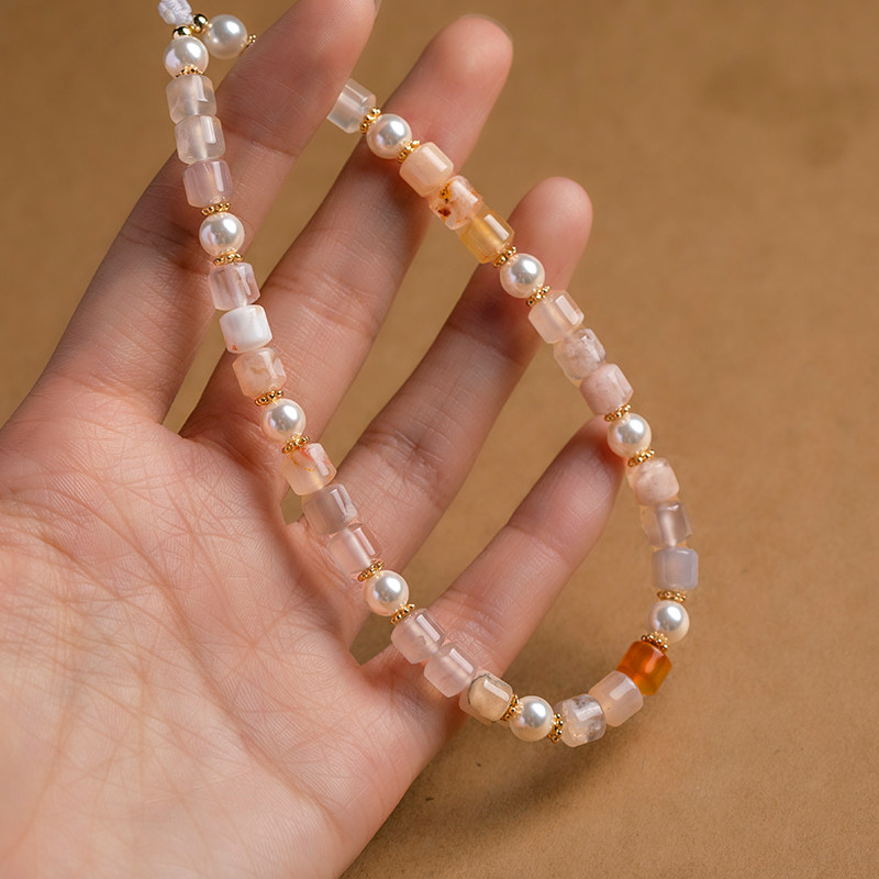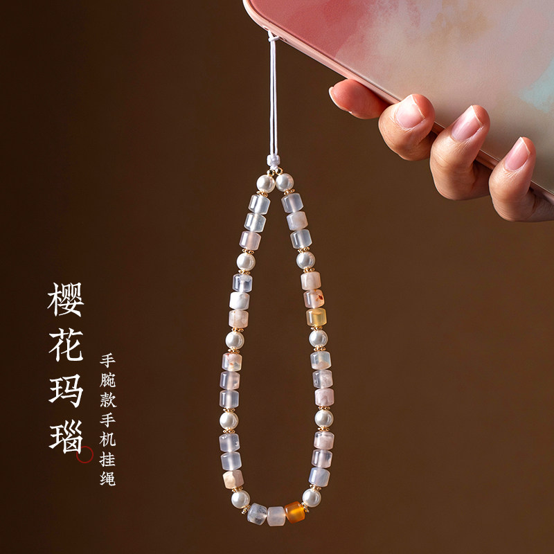 加噜天然樱花玛瑙珍珠贝壳女简约百搭短款防丢挂手腕手机链挂绳ins风手机壳挂饰cdd相机挂件手工饰品便携带