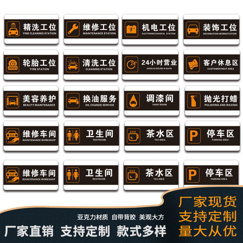 亚克力4S店维修车间工位标识牌轮胎工位有机吊牌四轮定位汽修厂清洁工位分区吊牌维修厂机电工位挂牌可定制做
