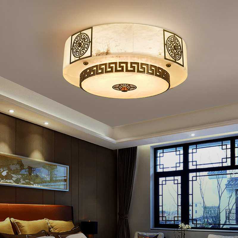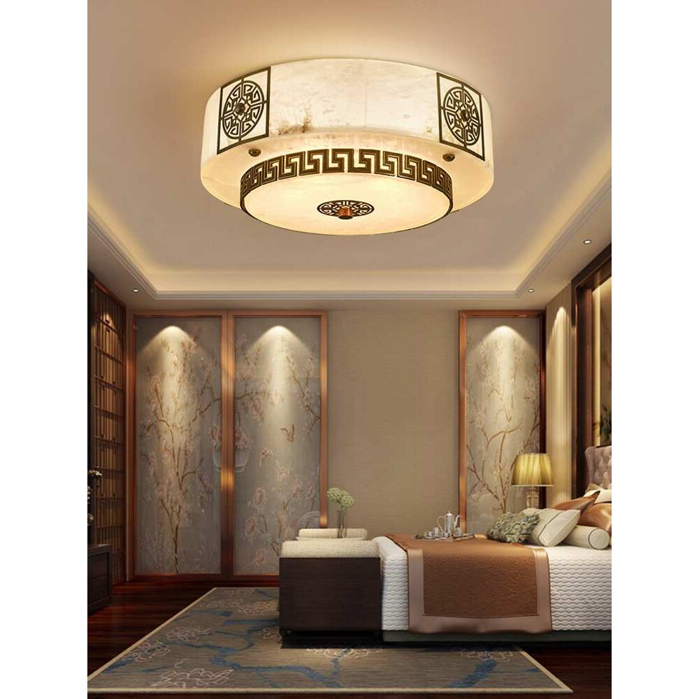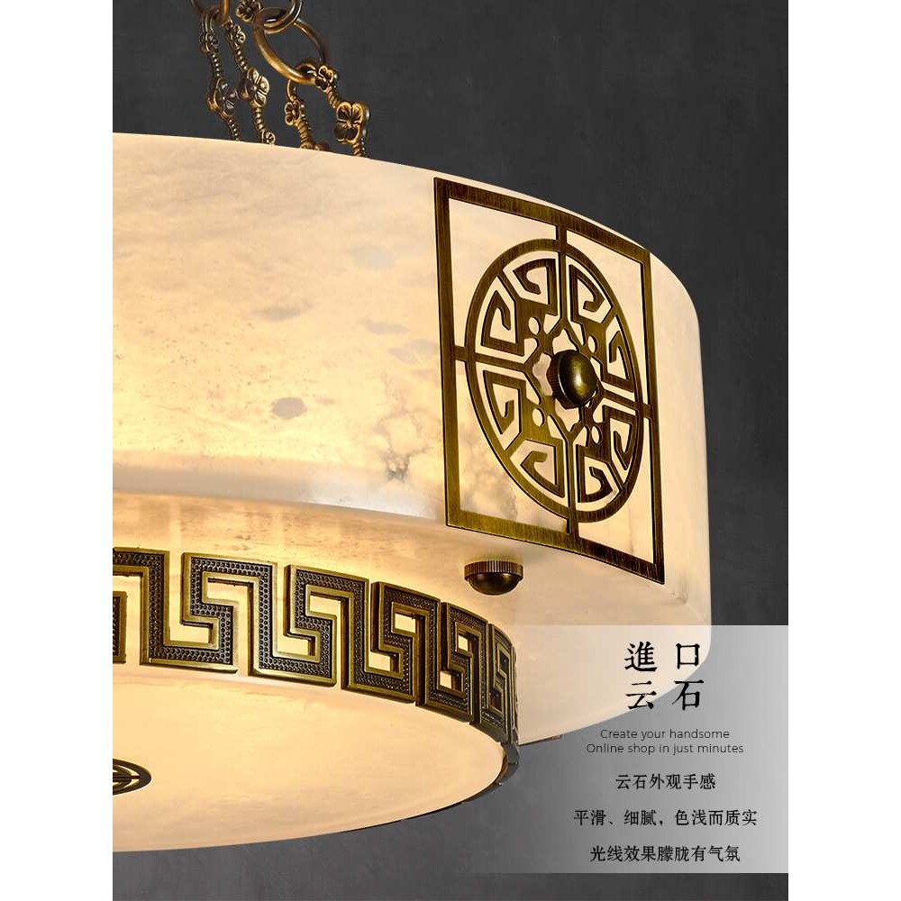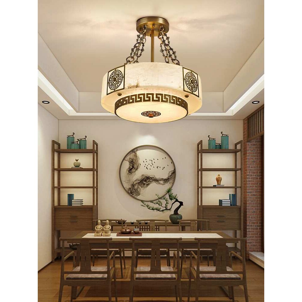 真云石全铜吸顶灯新中式客厅餐厅灯别墅主卧室灯吸吊两用灯具圆形