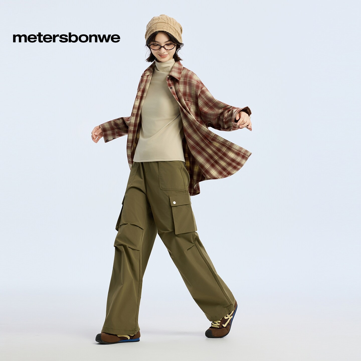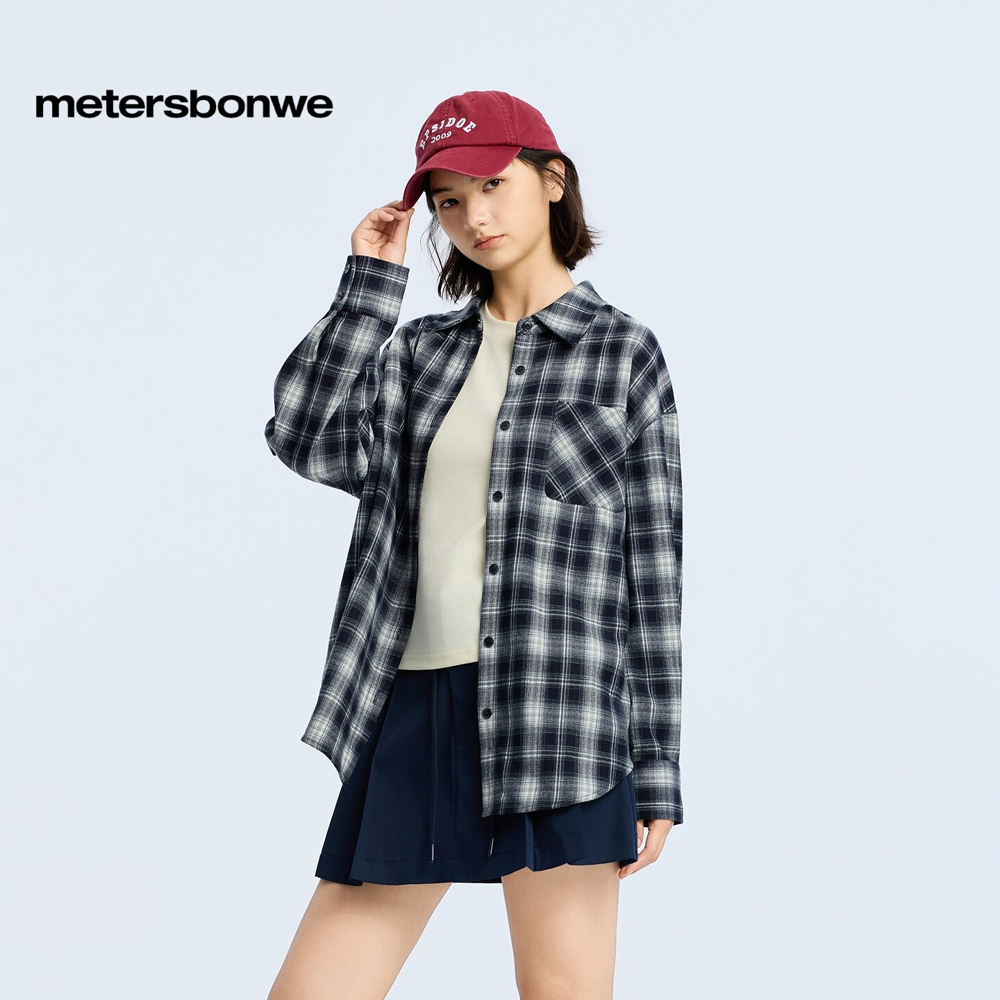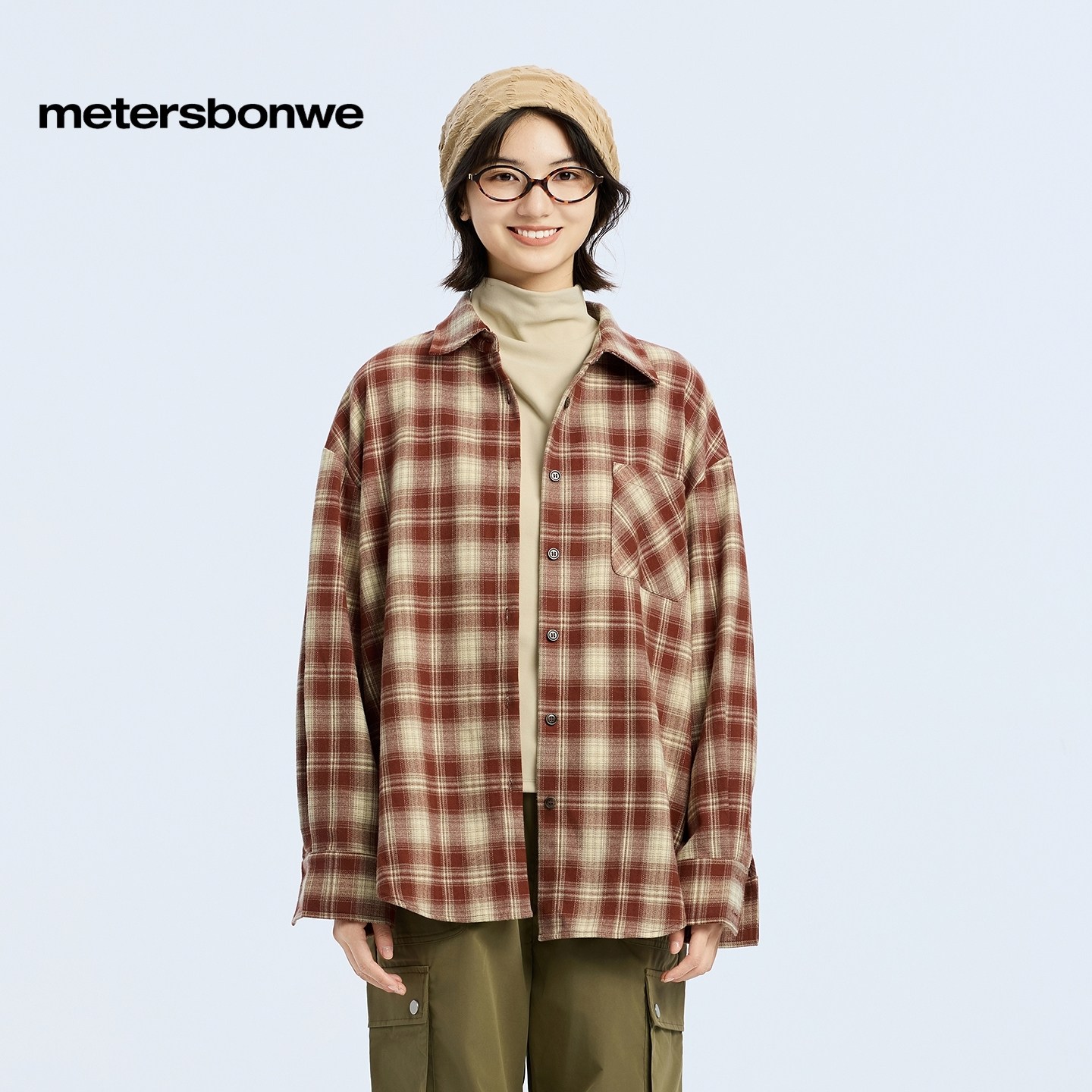 美特斯邦威衬衫女春新款休闲潮流宽松纯棉舒适格子长袖外套