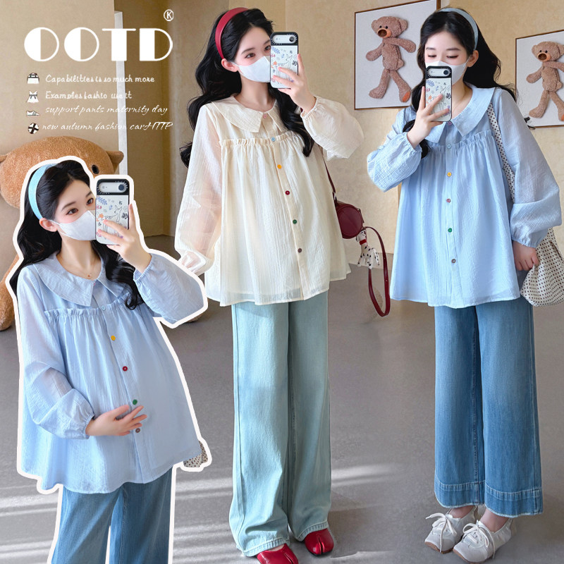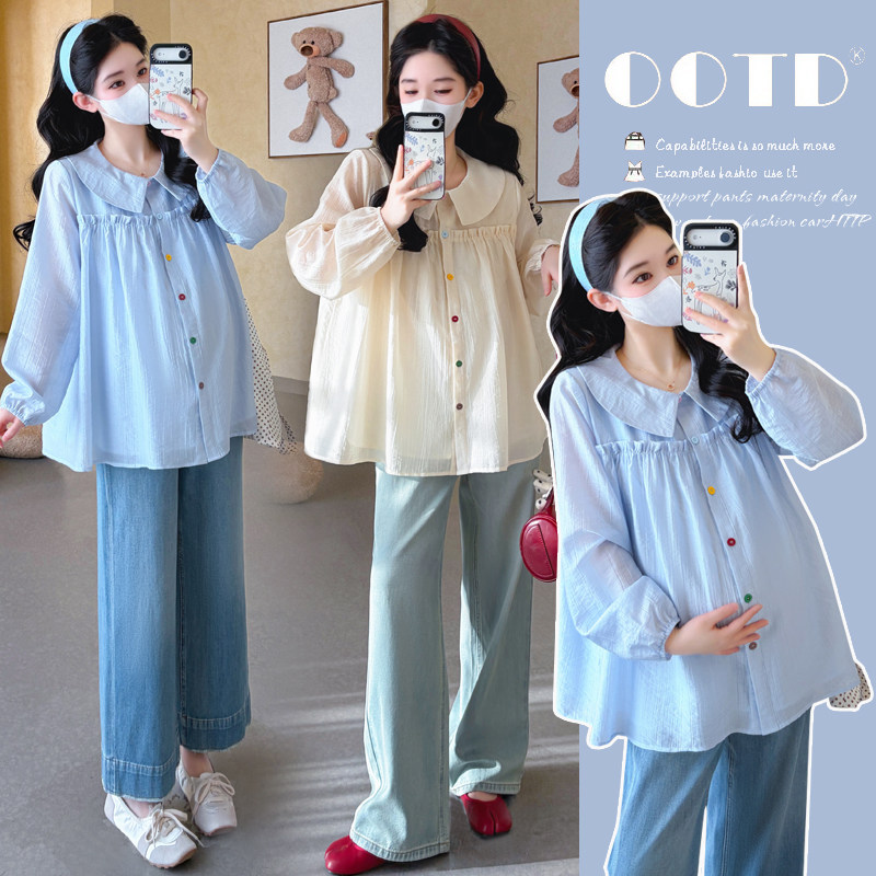 婧麒孕妇装上衣春装2026新款娃娃领孕妇衬衣春季洋气大码孕妇衬衫