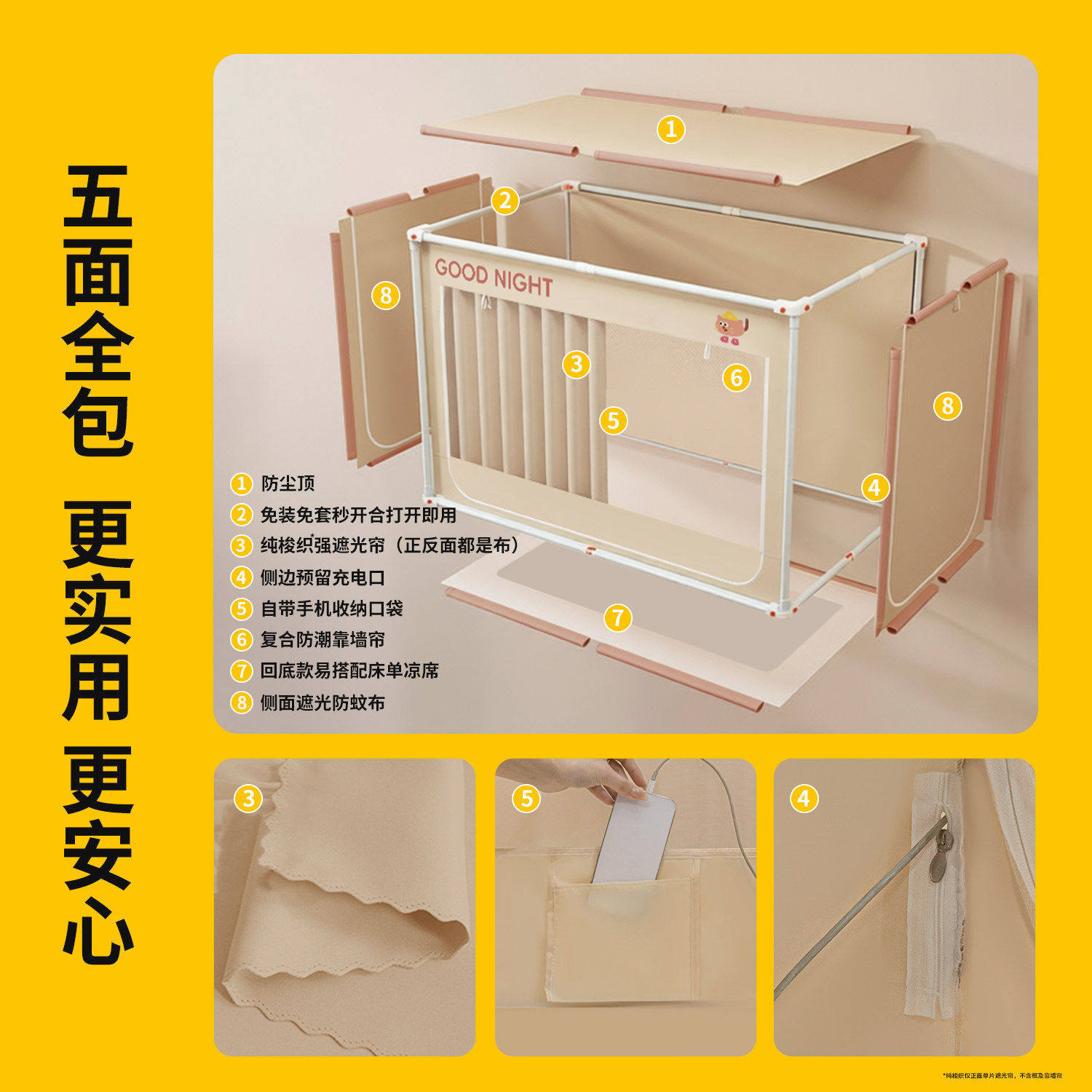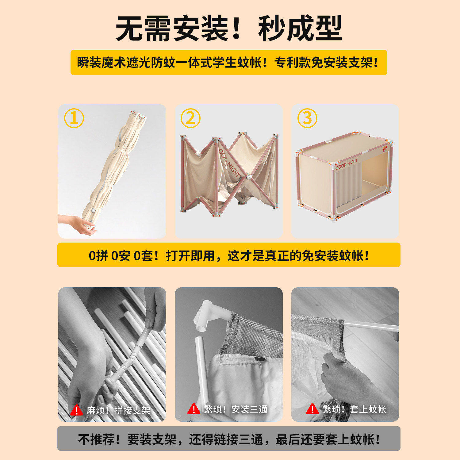 蚊帐床帘一体式学生宿舍免拼支架上下铺床幔高级纯色四季可用2026