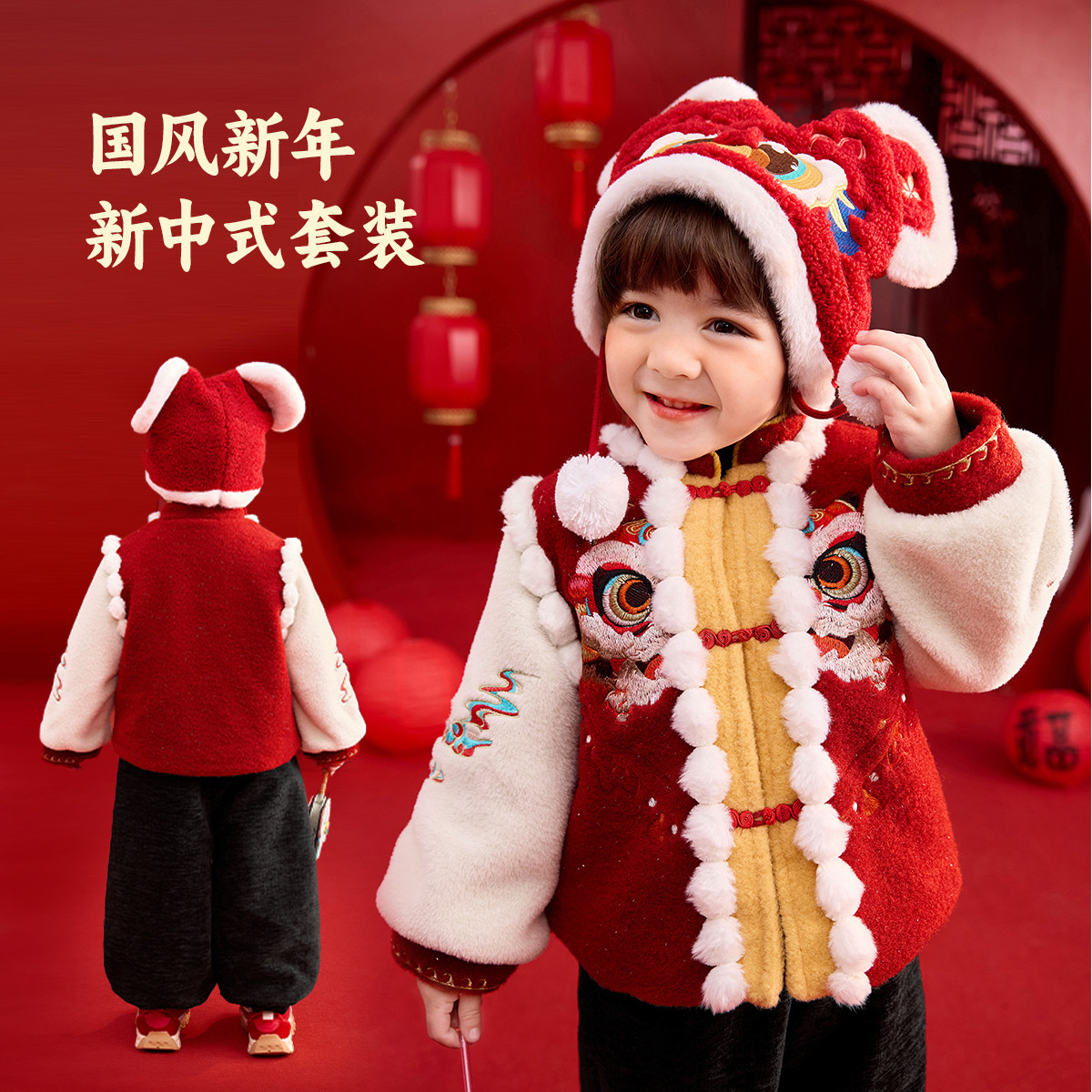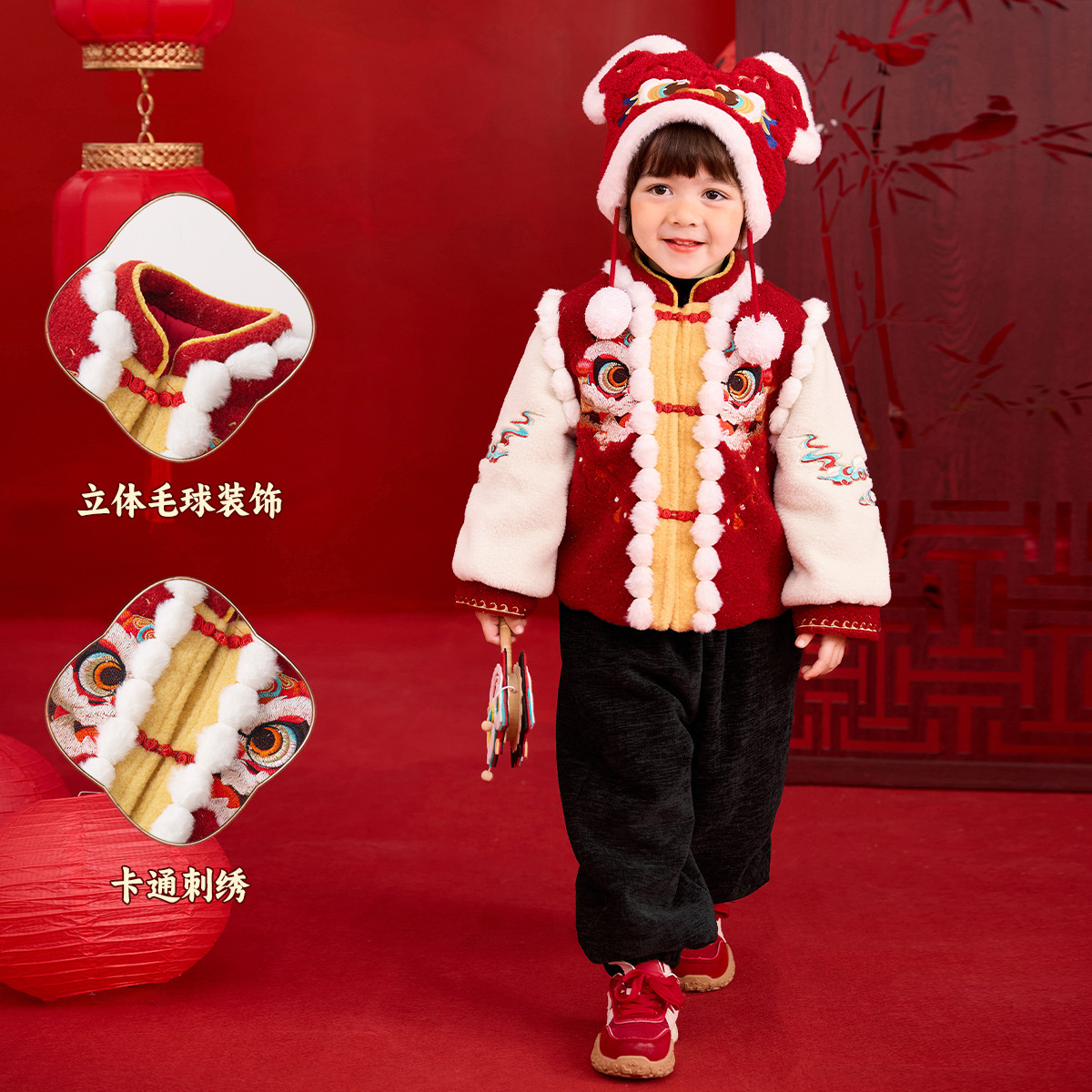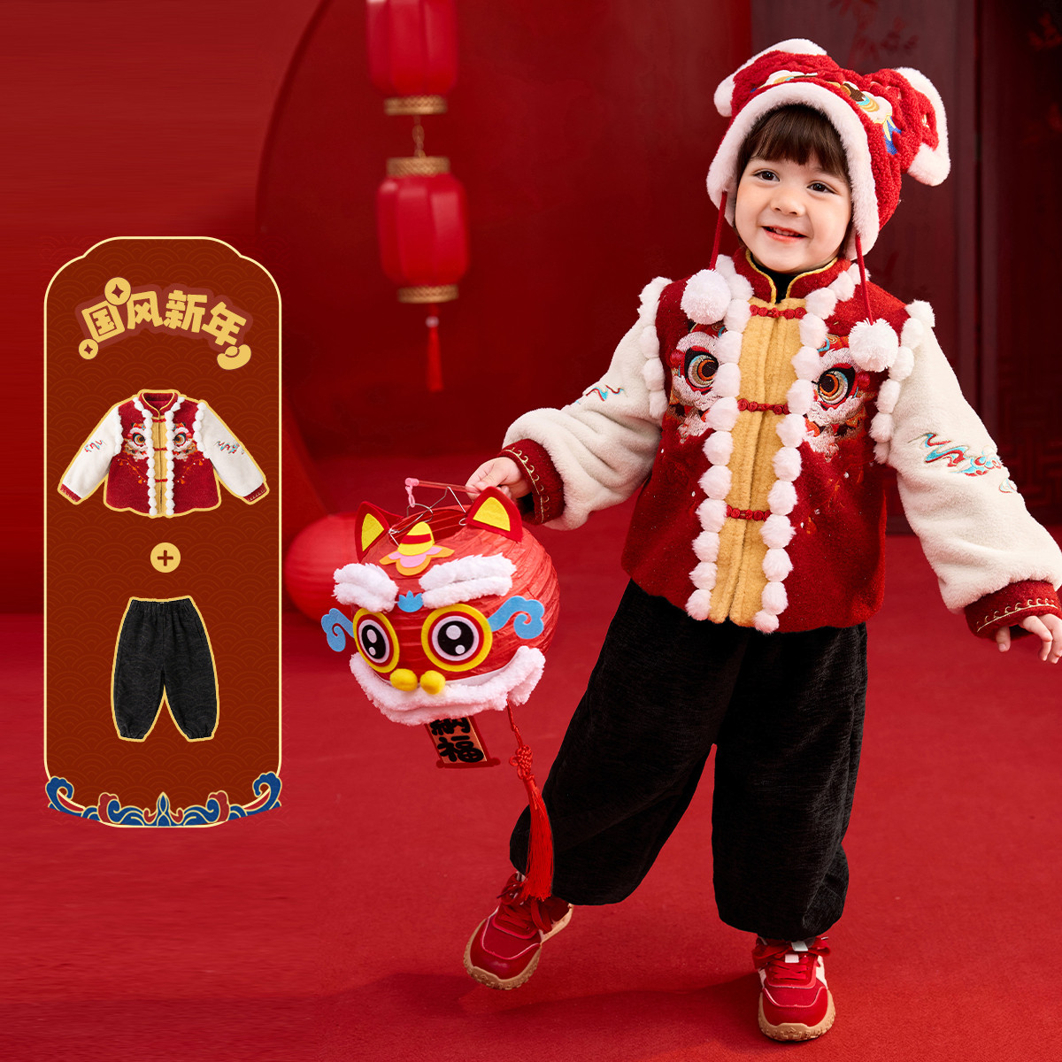 嘟嘟家儿童周岁礼服男童中国风唐装女童红色拜年服套装宝宝过年装