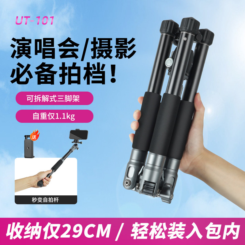 轻装时代UT101便携三脚架单反相机摄影摄像站姐同款演唱会支架微单手机拍照视频超小巧可拆卸旅游三角架云台