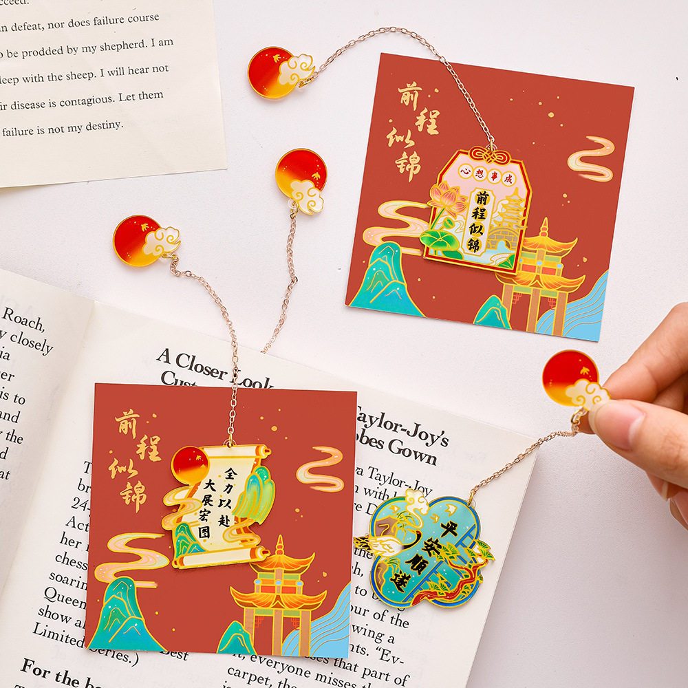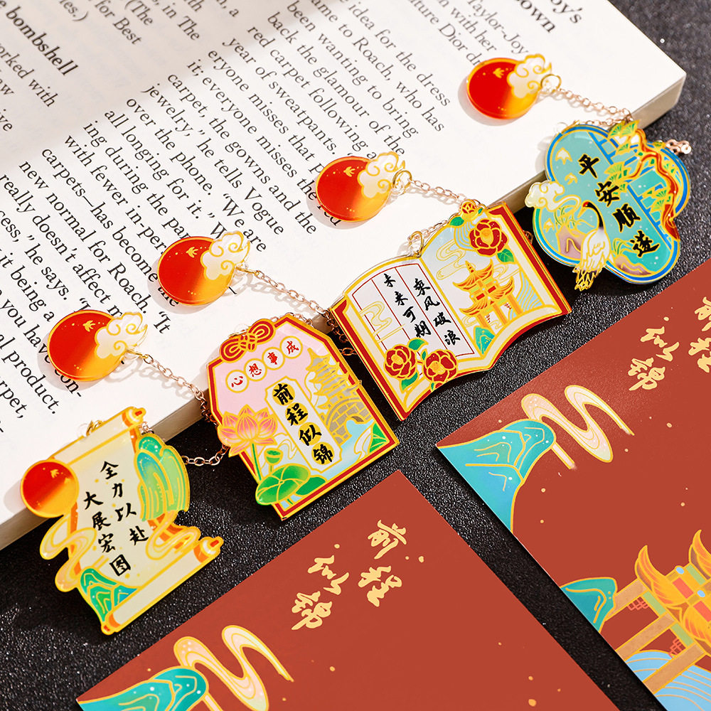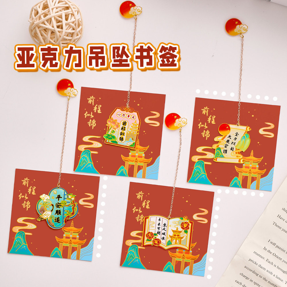 国潮励志文字书签学生亚克力链条吊坠书页夹高颜值古风书签小礼品