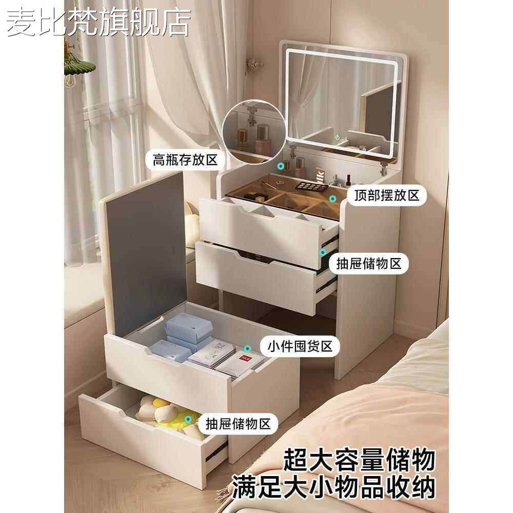 麦比梵实木梳妆台小型奶油风化妆 桌 卧室现代简约迷你翻盖床头收纳 柜 一体摆件饰品床笠拉车盖布