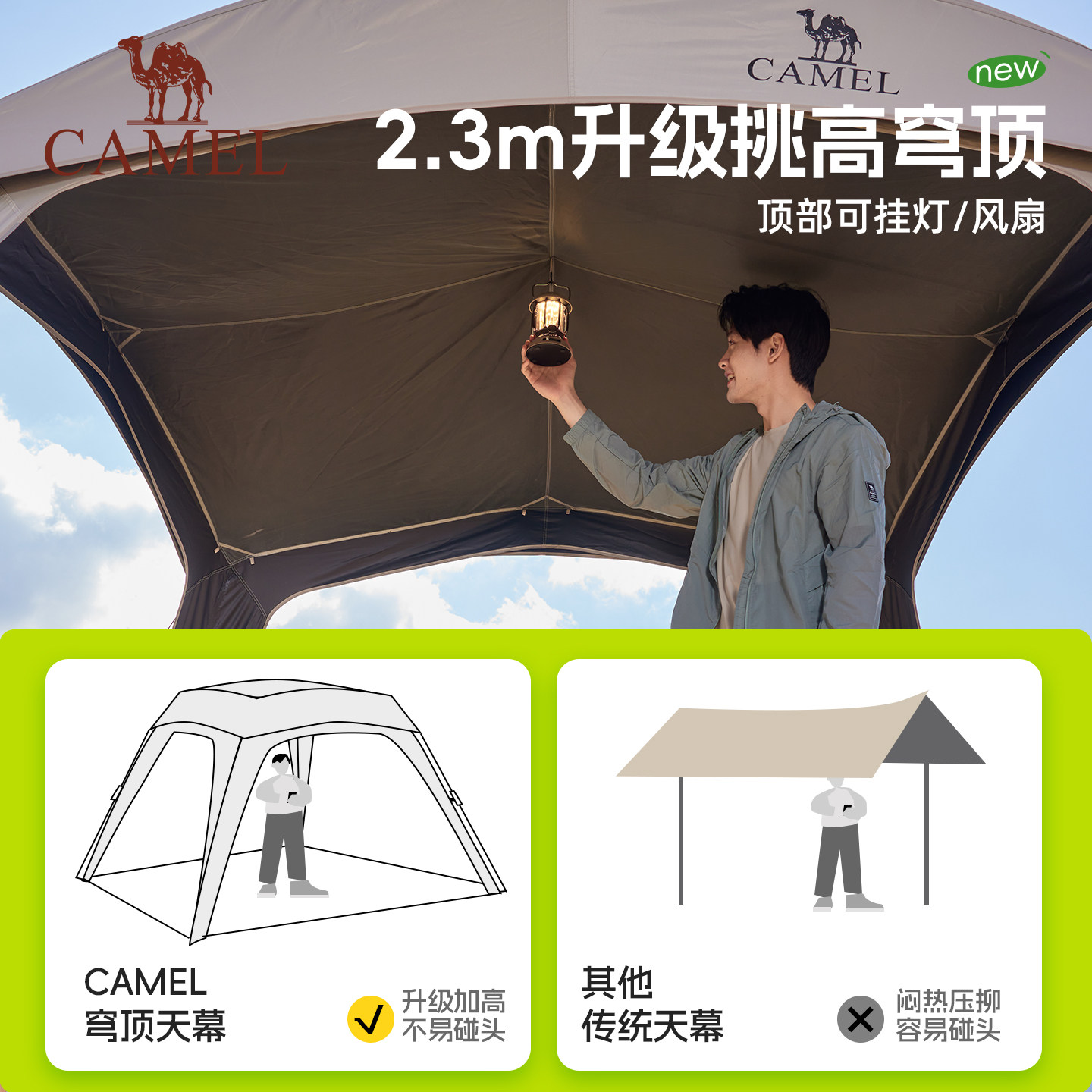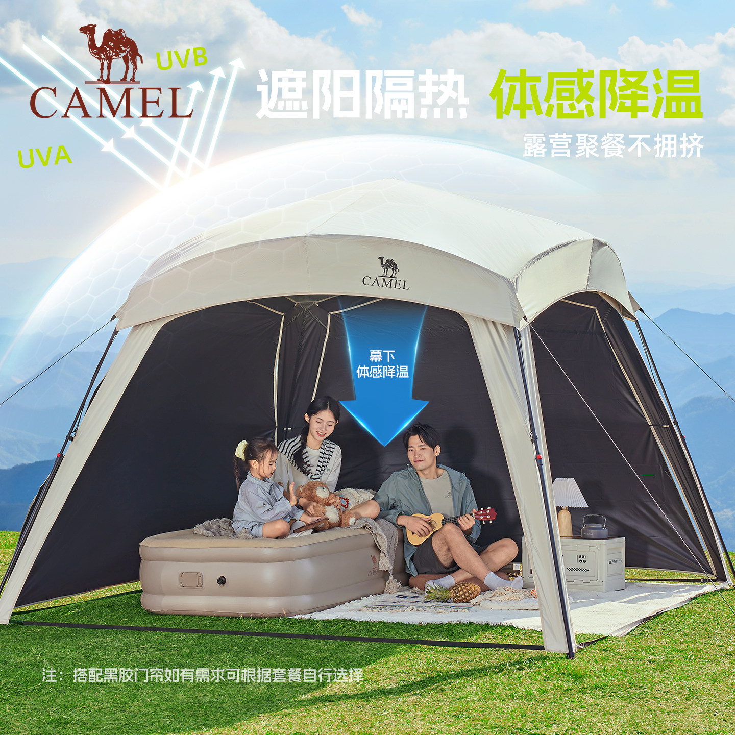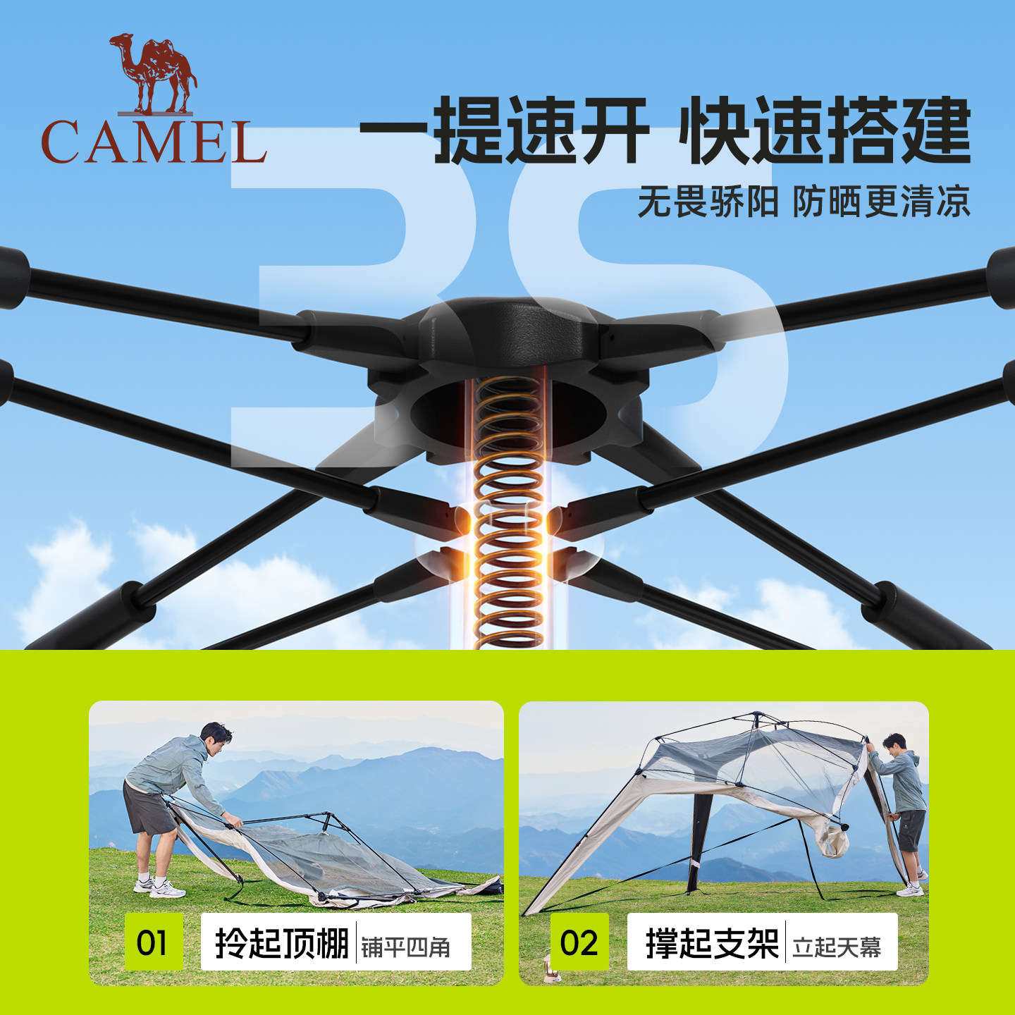 骆驼黑胶一体速开天幕帐篷户外露营穹顶新型懒人遮阳棚2026新款