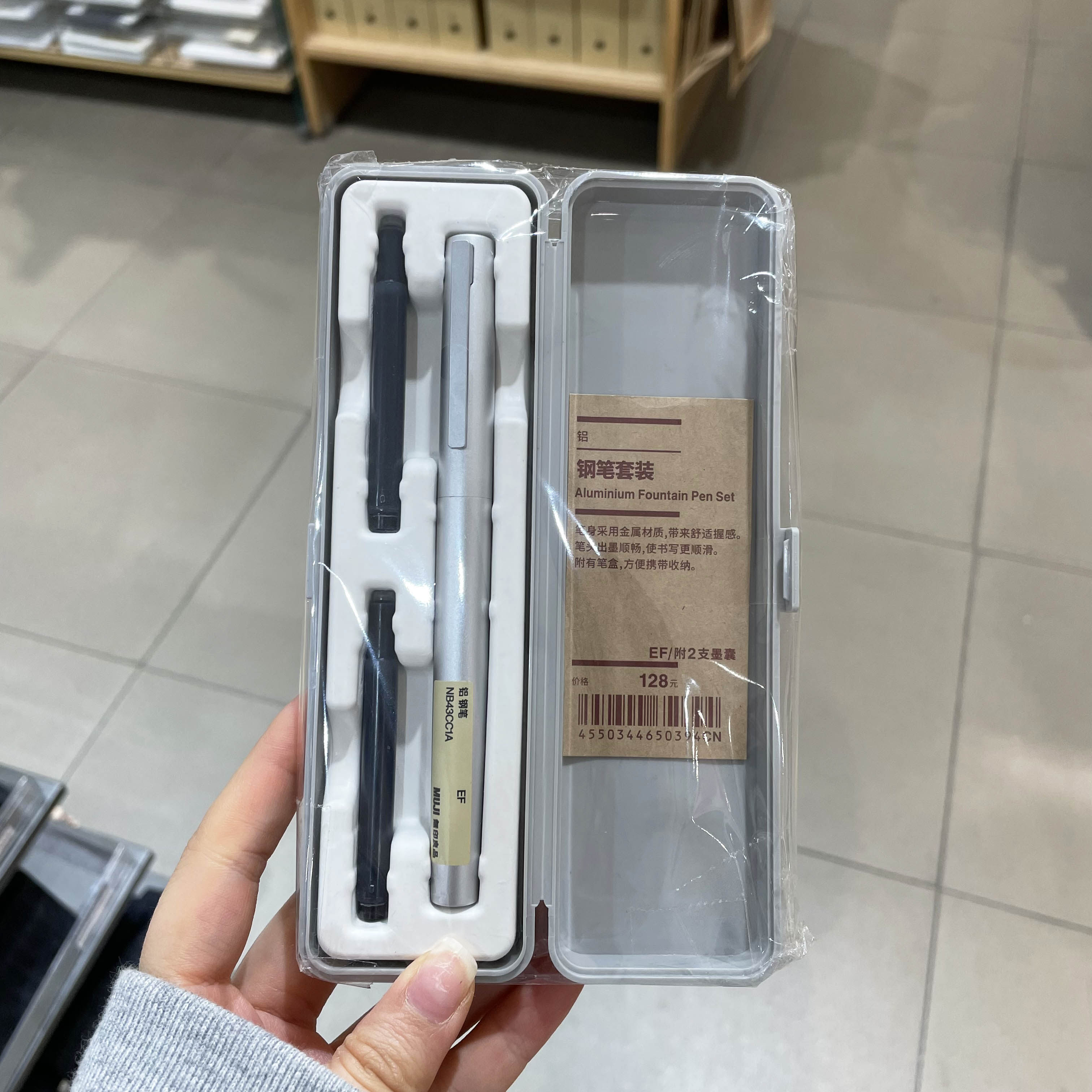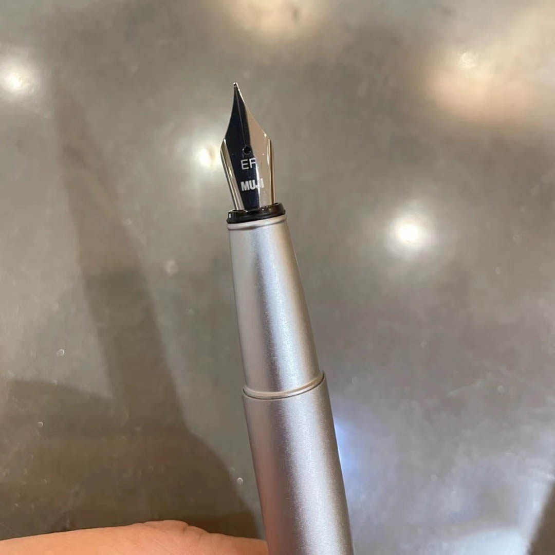 无印良品铝制钢笔套装 聚碳酸酯附笔盒钢笔蓝黑色墨囊 万年轴钢笔