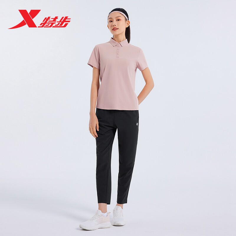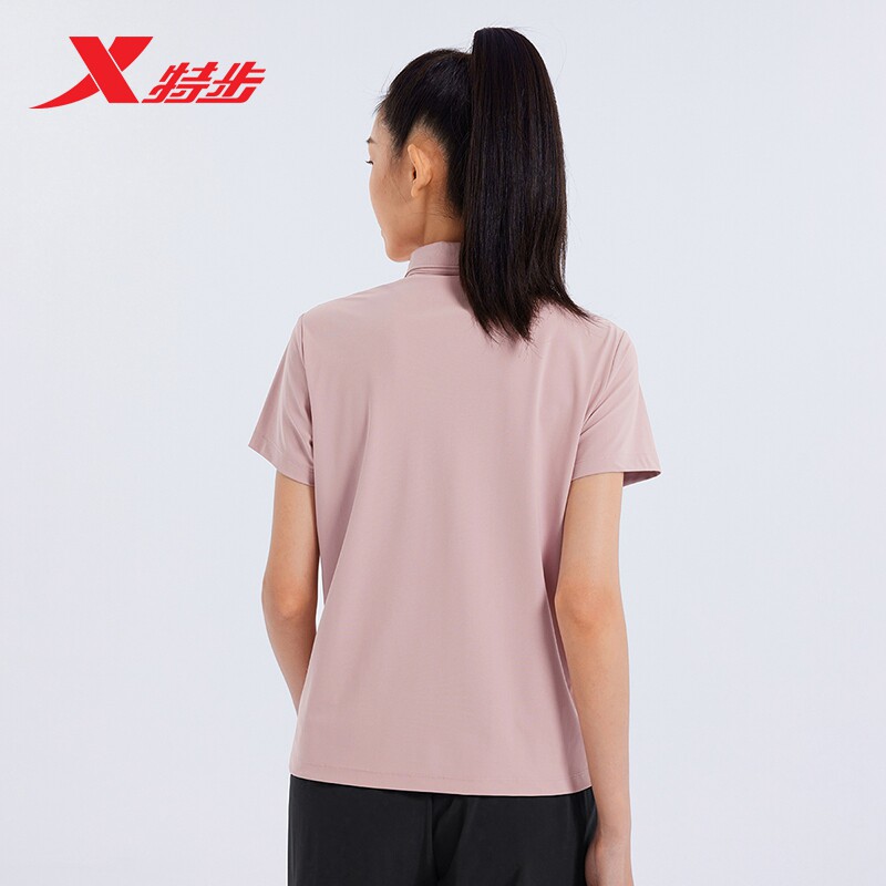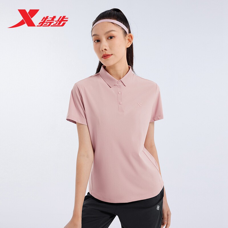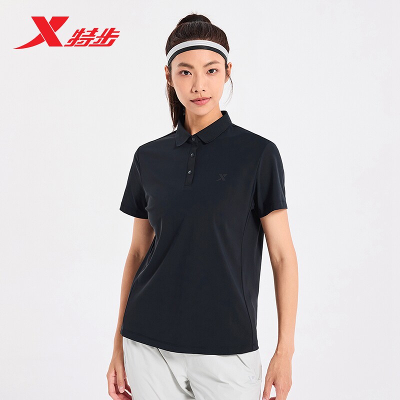 特步短袖POLO衫女26新款夏透气运动上衣训练健身T恤976328020466