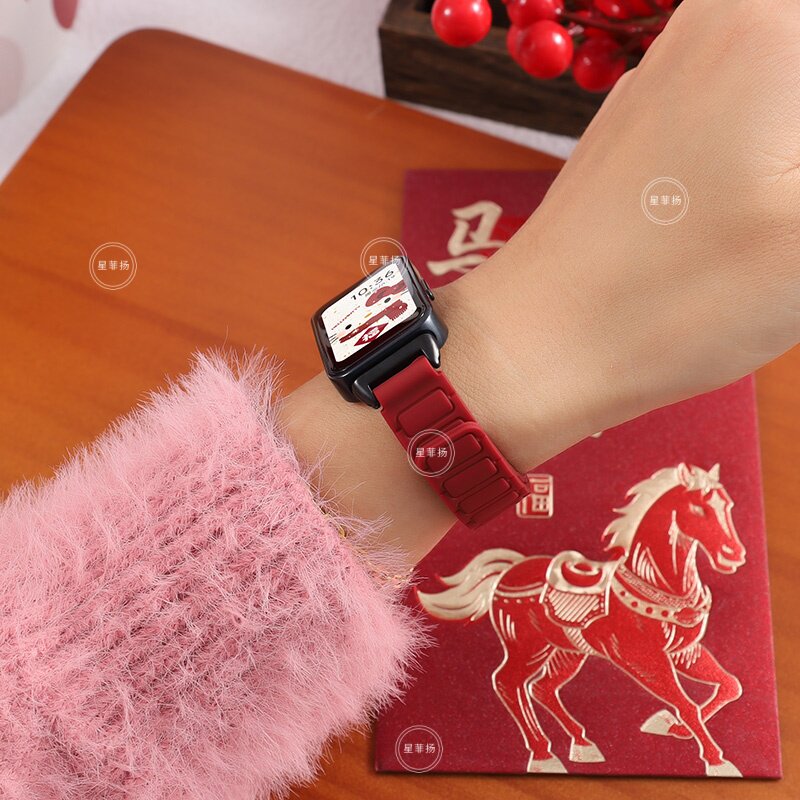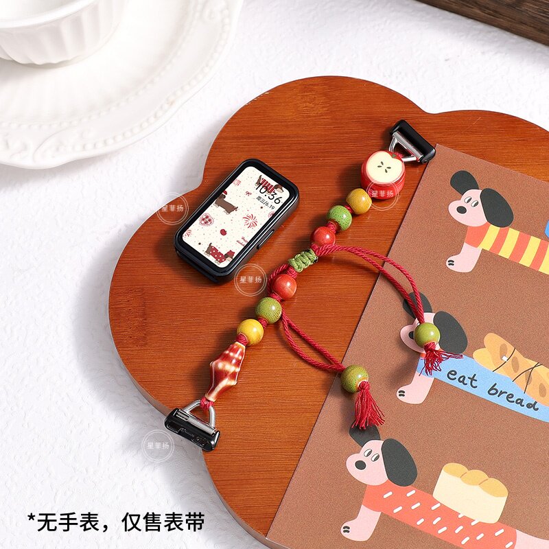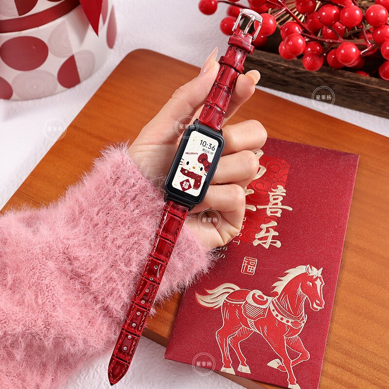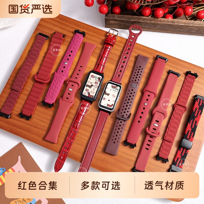 新年红适用华为手环10/9表带硅胶磁吸编织8/7/6时尚女生荣耀9手链腕带金属米兰7创意高级感男款红色串珠猫爪