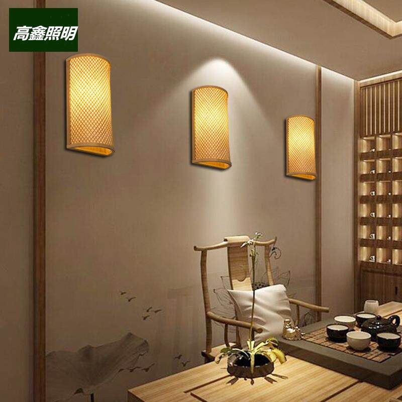 日式壁灯卧室床头走廊过道楼梯原木led灯新中式禅意创意酒店墙灯