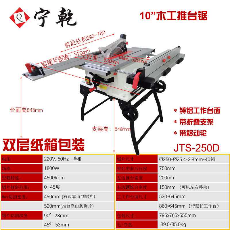 宁乾木工推台锯折叠便携台式电圆锯非无尘锯台家装多功能单相电锯