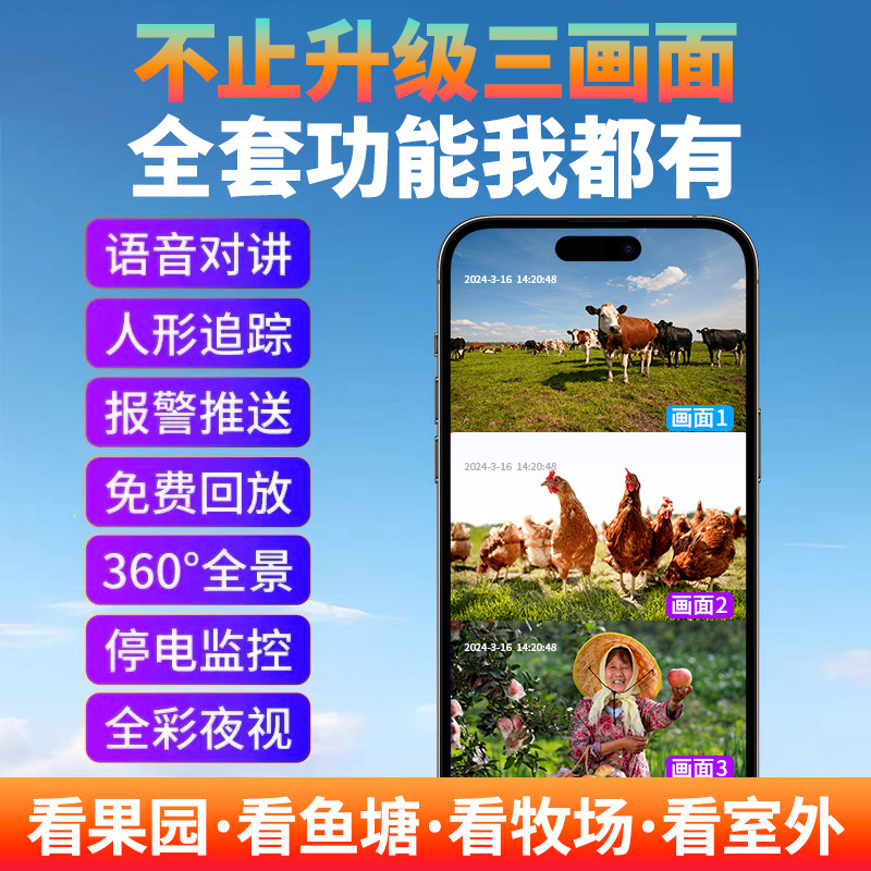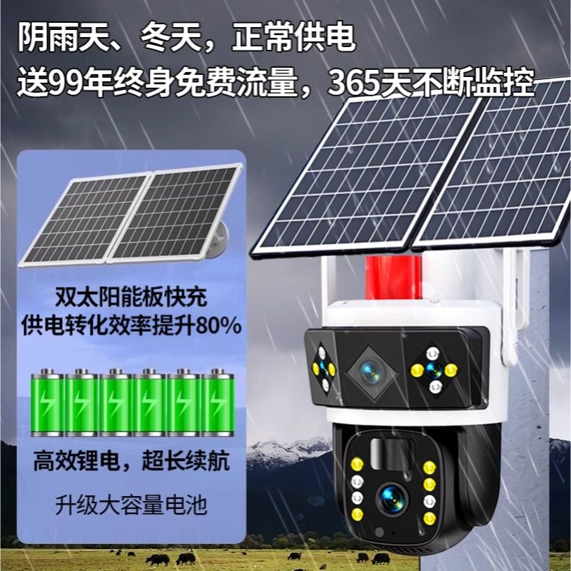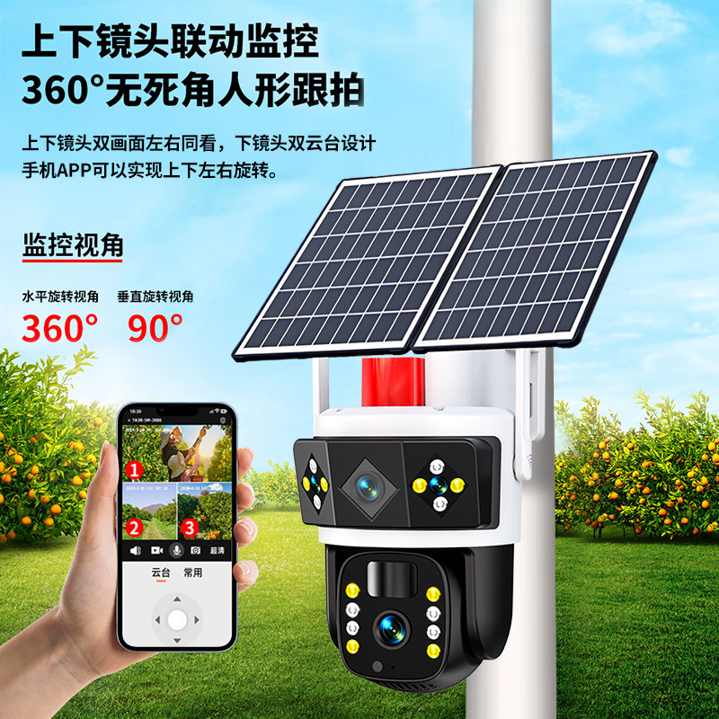 太阳能摄像监控360度无死角手机远程高清夜视室外无电无网摄影头