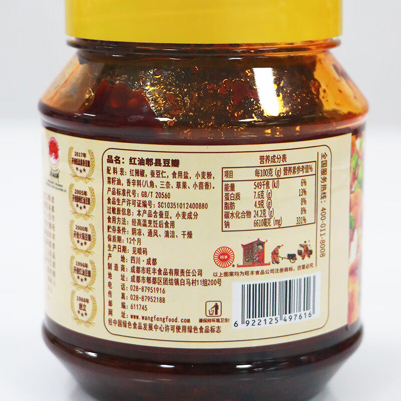 旺丰郫县酱香豆瓣酱正宗炒菜专用四川红油二师兄官方旗舰店