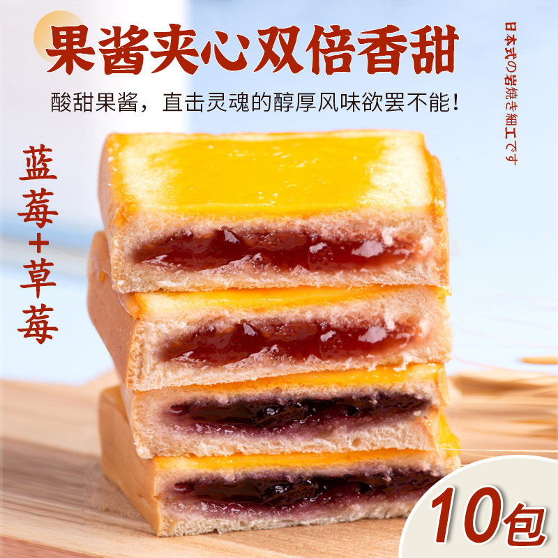 蓝莓味岩烧吐司夹心面包营养早餐蛋糕即整箱健康休闲零食小吃食品