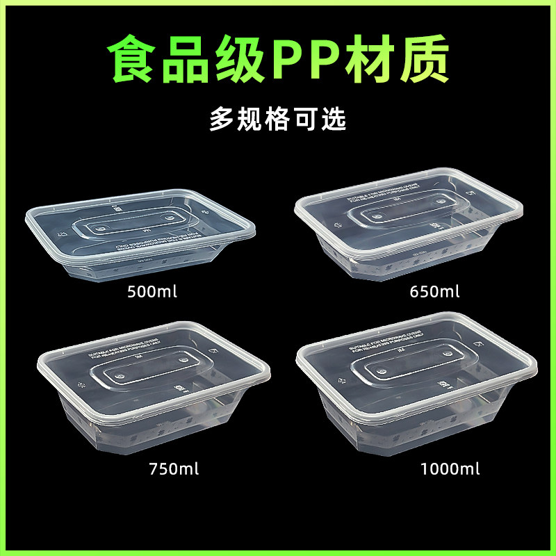 750ml/650方形餐盒一次性打包盒商用长方形快餐塑料带盖外卖饭盒