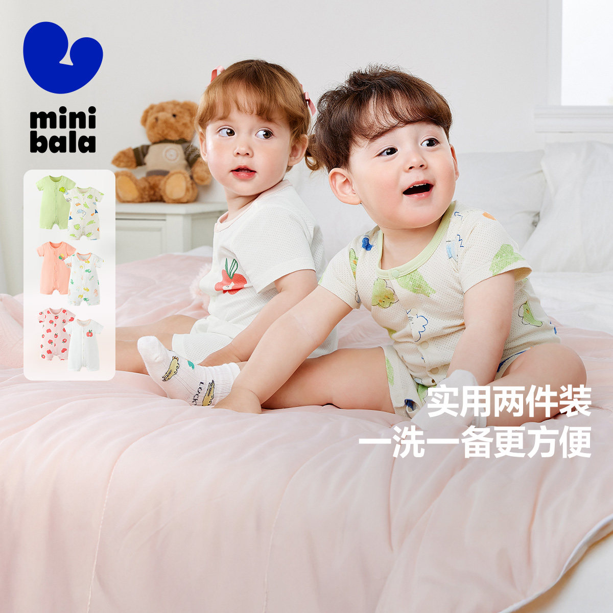 【2件装】迷你巴拉巴拉宝宝网眼家居爬服夏季新款连体衣婴儿衣服