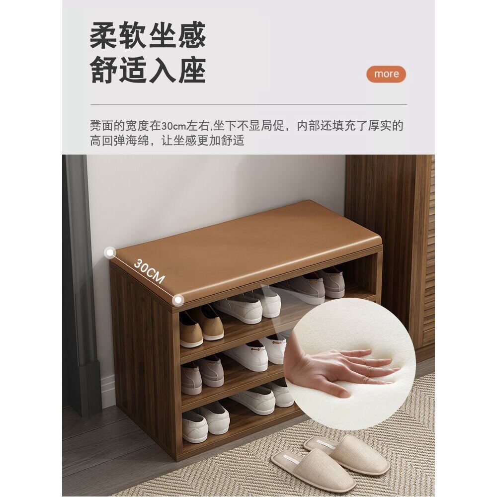 d免漆实木软包换鞋凳多层鞋架可坐穿鞋凳进门凳入户门鞋柜收纳凳