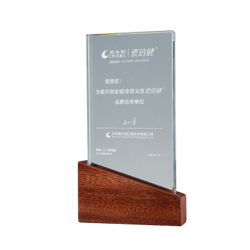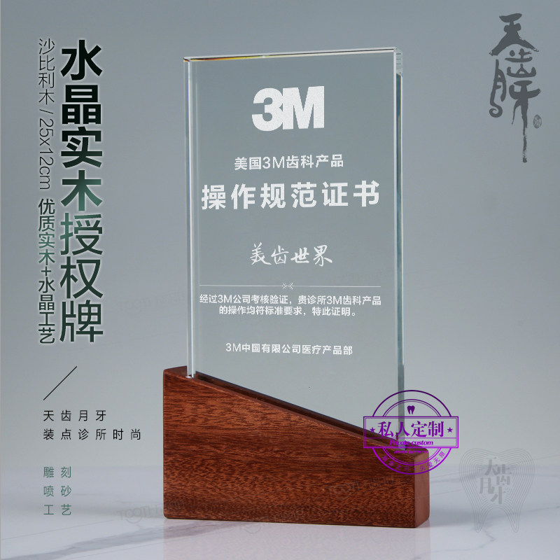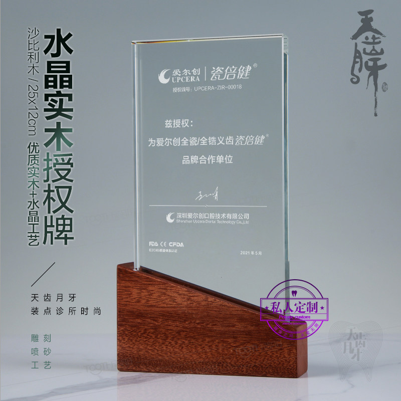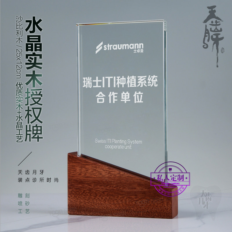 口腔铭牌定做牙科奖牌25x12cm水晶实木授予牌子亚克力口腔授权牌