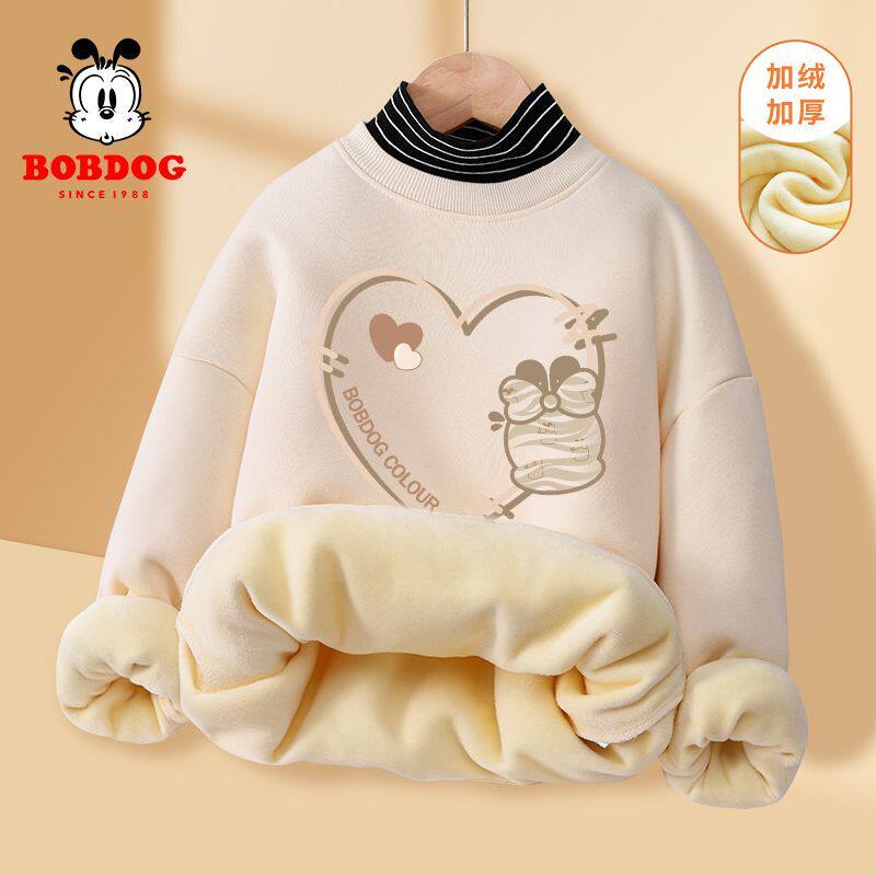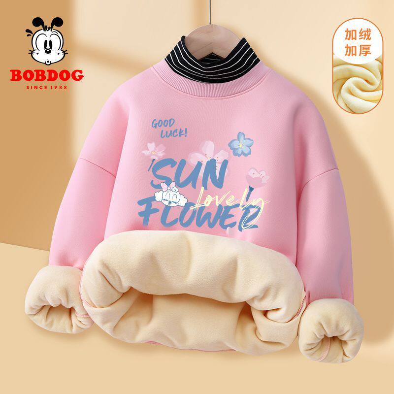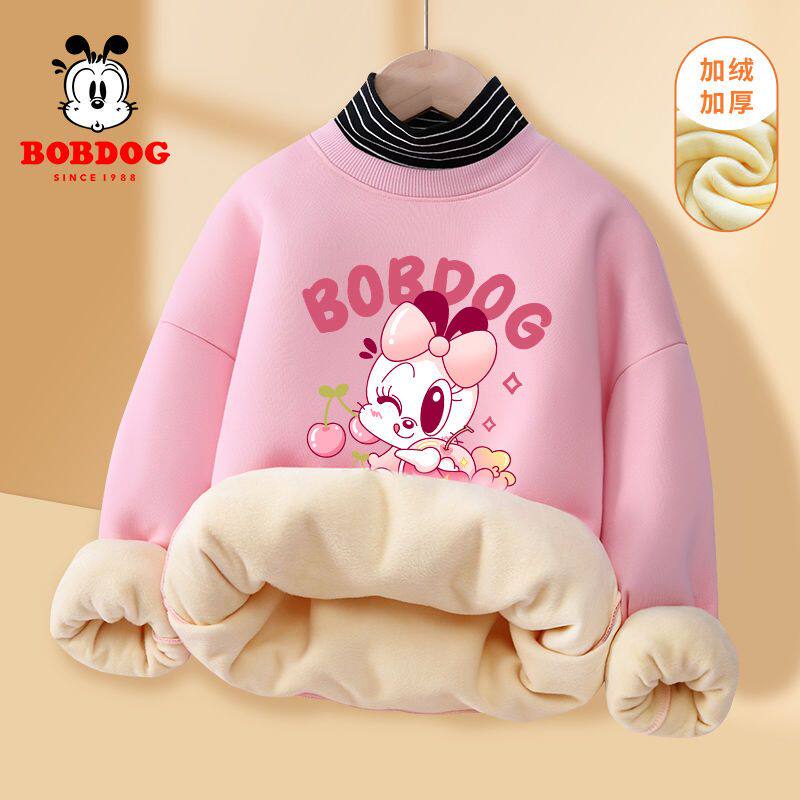 巴布豆女童卫衣加绒加厚衣服2025新款冬季儿童保暖上衣中大童冬装
