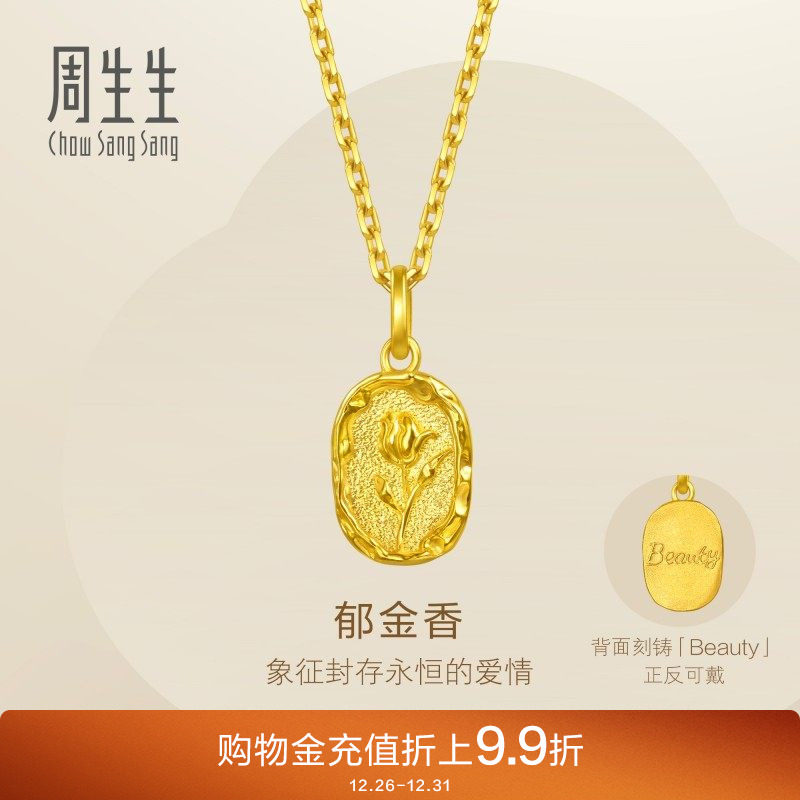 周生生永系列郁金香火漆印章黄金吊坠足金挂坠项坠95939P
