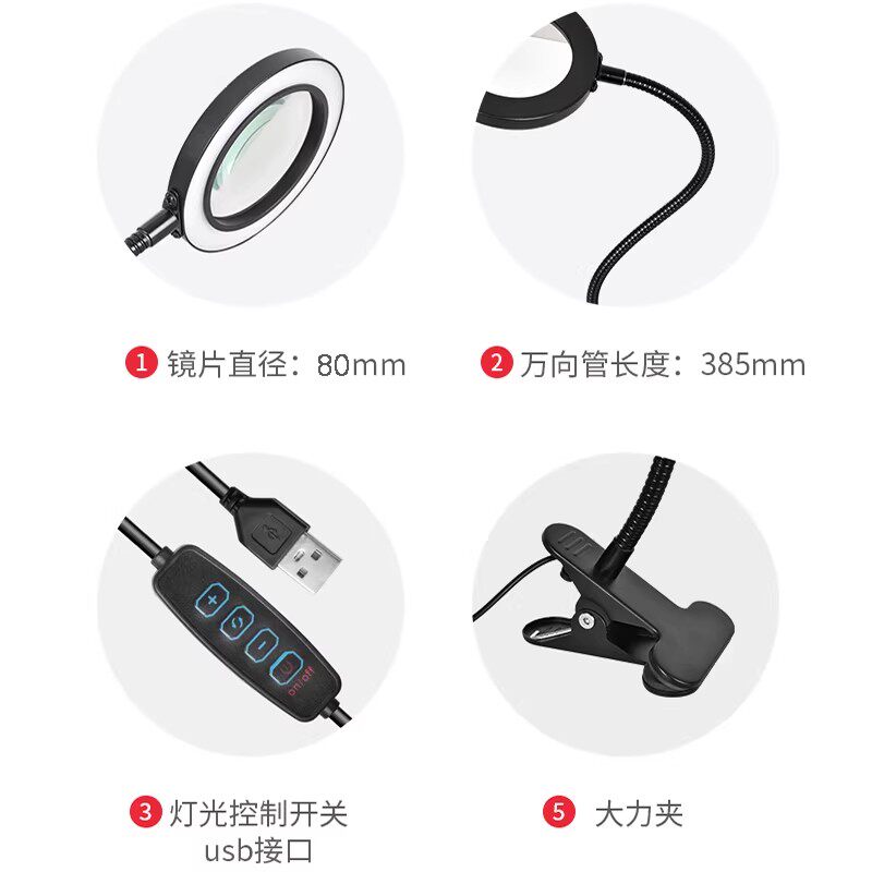 台式放大镜台灯工作台带led灯夹式桌面支架维修用电路板焊台雕刻微雕高清高倍夹式修手表专用手机钟表专业100