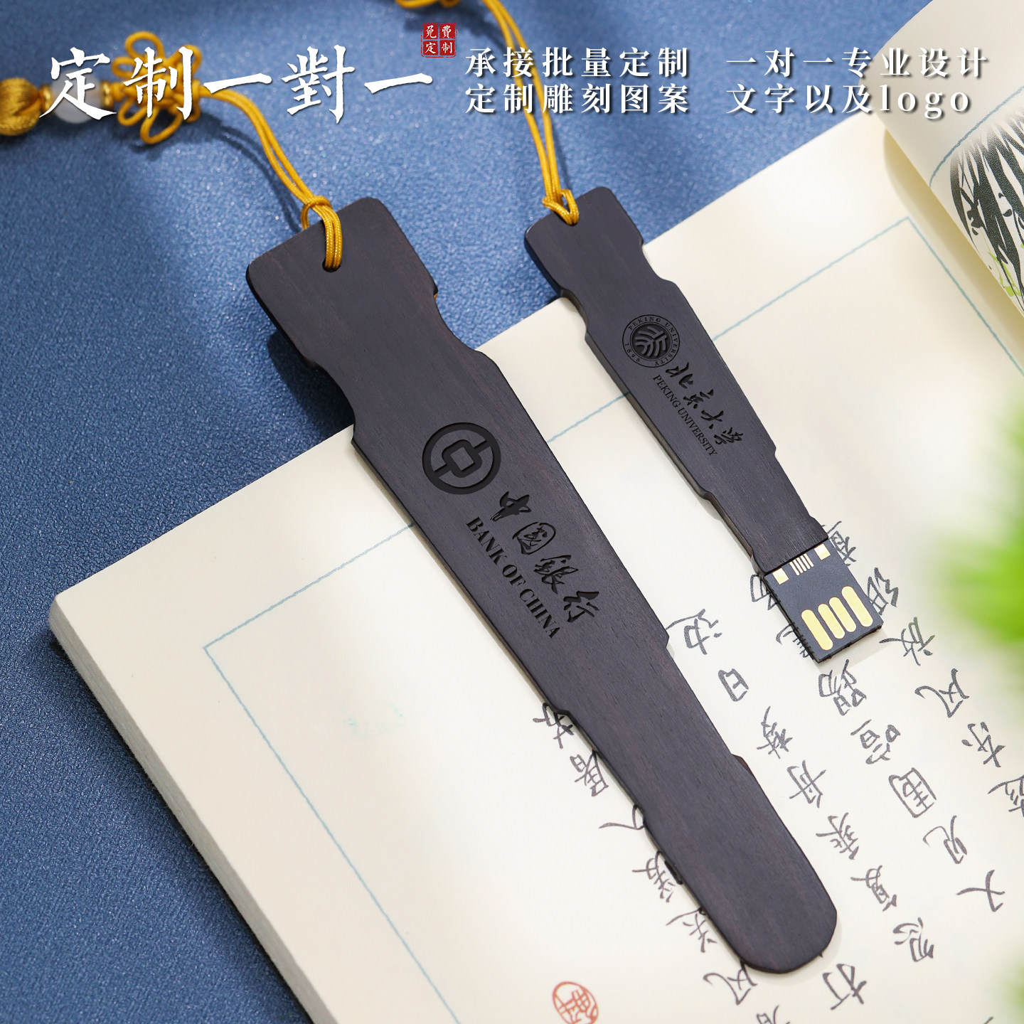 毕业创意古典中国风黑檀木乐器知音书签U盘礼盒定制刻字 高档精致大学博物馆旅游文创设计产品纪念品商务礼品