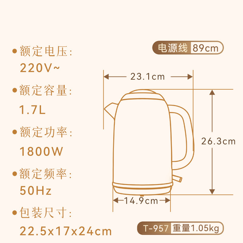 金灶T-957电热水壶家用大容量烧水壶2026新款自动断电1.7L煮水壶